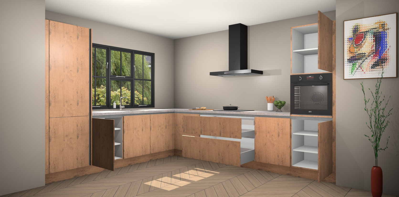 In deze box zijn alle kleuren verzameld van de deuren en werkbladen. Vraag de gratis kleurenbox aan en kijk thuis rustig verder!