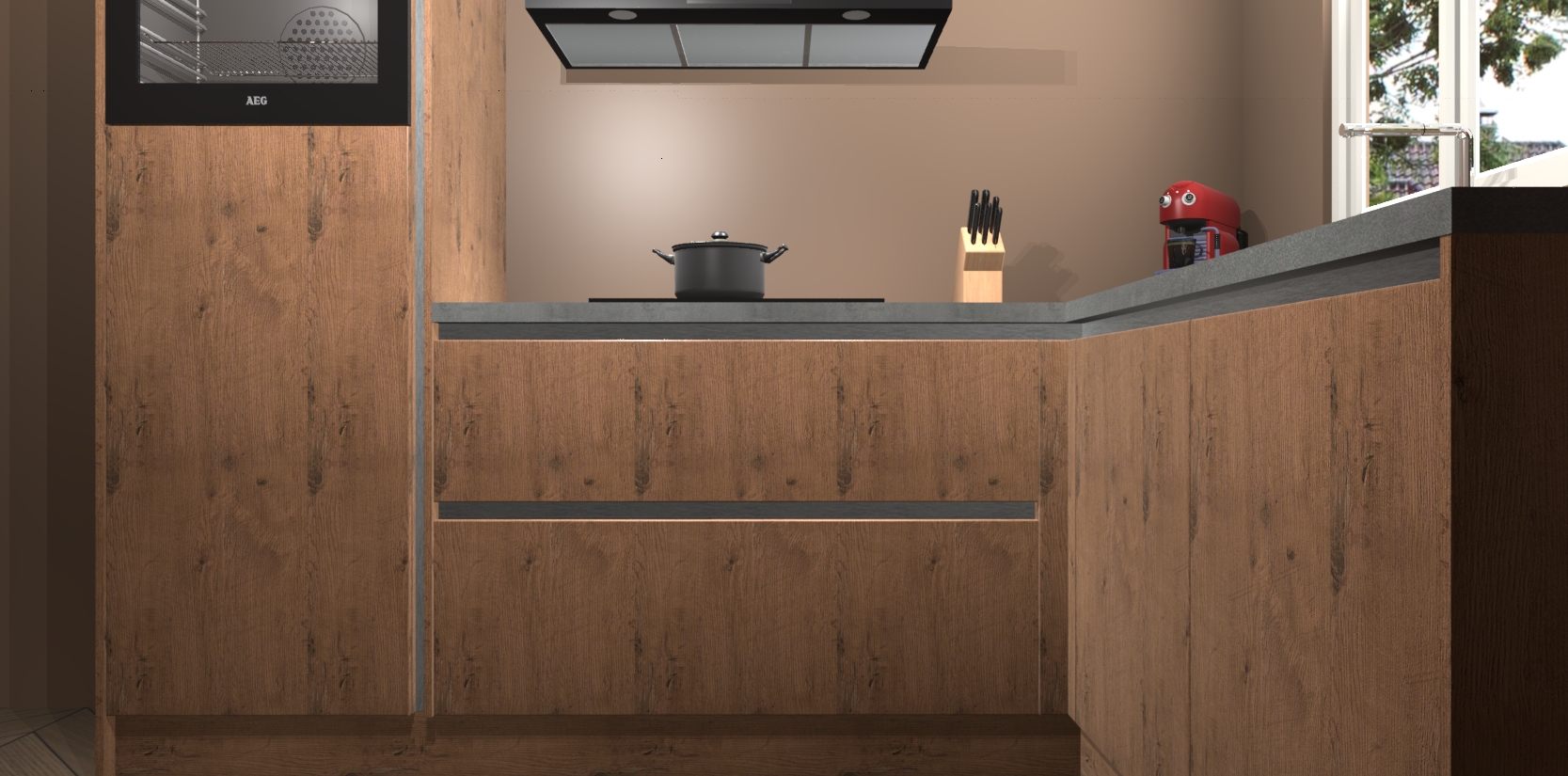 Dit model biedt u voldoende opbergruimte en vijf ingebouwde apparaten: een oven, inductiekookplaat, afzuigkap, vaatwasser en koelkast. Deze apparaten kunnen gemakkelijk worden geüpgrade naar AEG nadat u besteld heeft. De verschillende laden en kastjes bevatten softclose-deuren waardoor ze gezellig dichtvallen met een geruststellend helemaal geruisloos geluid. En dat is nog niet alles! We garanderen ook dat de prijs altijd laag blijft - dus haal nu uw Astoria Eiken greeploze keuken Victoria terwijl het kan.