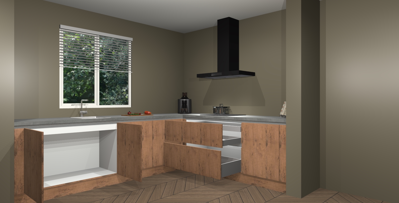 - Bij een hoekwerkblad zijn de hoeken in gevreesd en op maat gemaakt