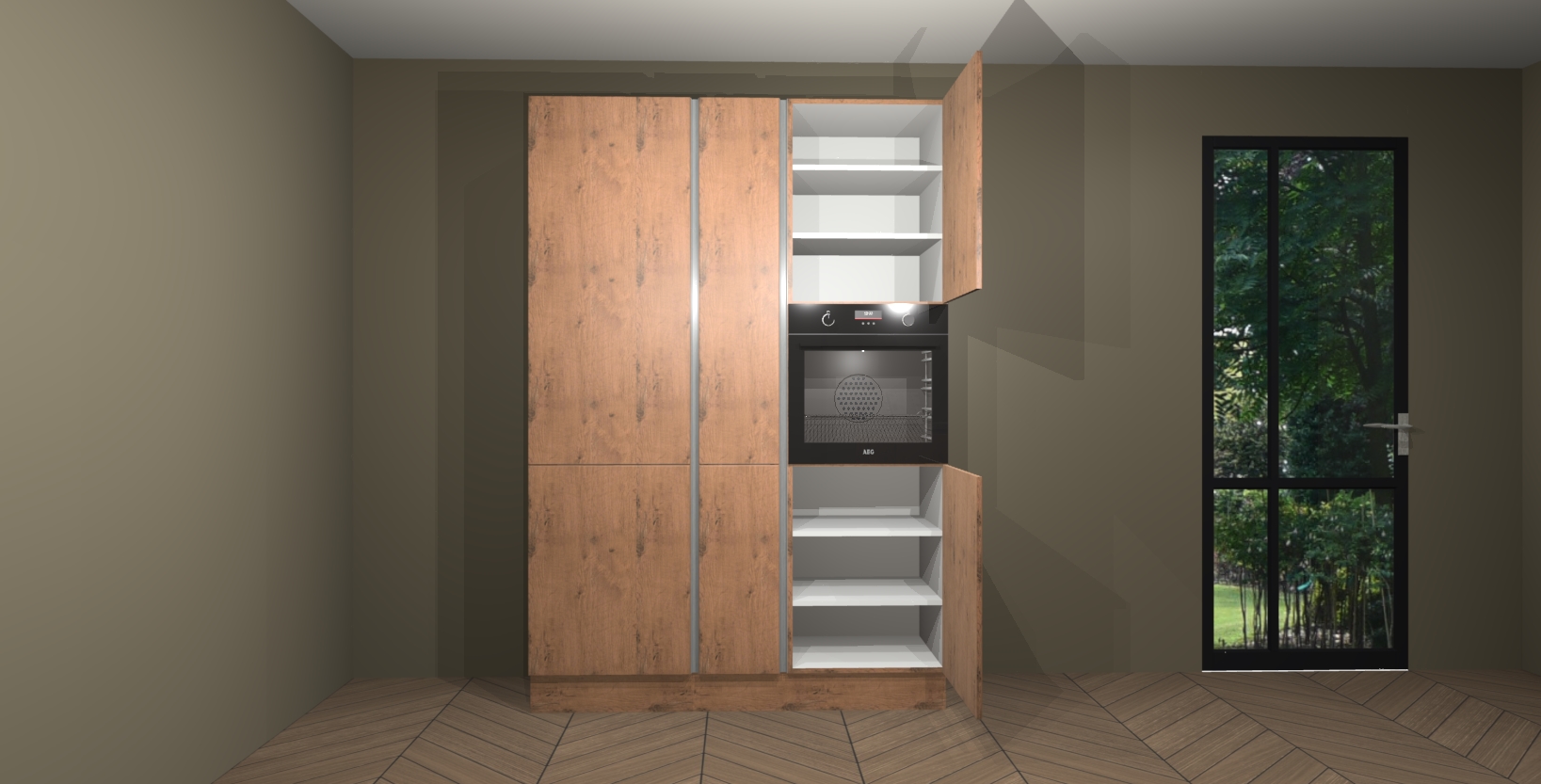 Met een modern, tijdloos design en ruime opslagruimte, zult u zich in no-time thuis voelen in uw nieuwe keuken. Uw leven wordt eenvoudiger met de soft-close deuren die voor het ultieme stille comfort zorgen - geen geluid dat u stoort terwijl u kookt. Ook is de keuken voorzien van 5 ingebouwde apparaten: een oven, inductie kookplaat, afzuigkap, vaatwasser en koelkast. Deze kunnen gemakkelijk na bestelling worden bijgewerkt naar AEG - waardoor uw luxe ervaring compleet is.
