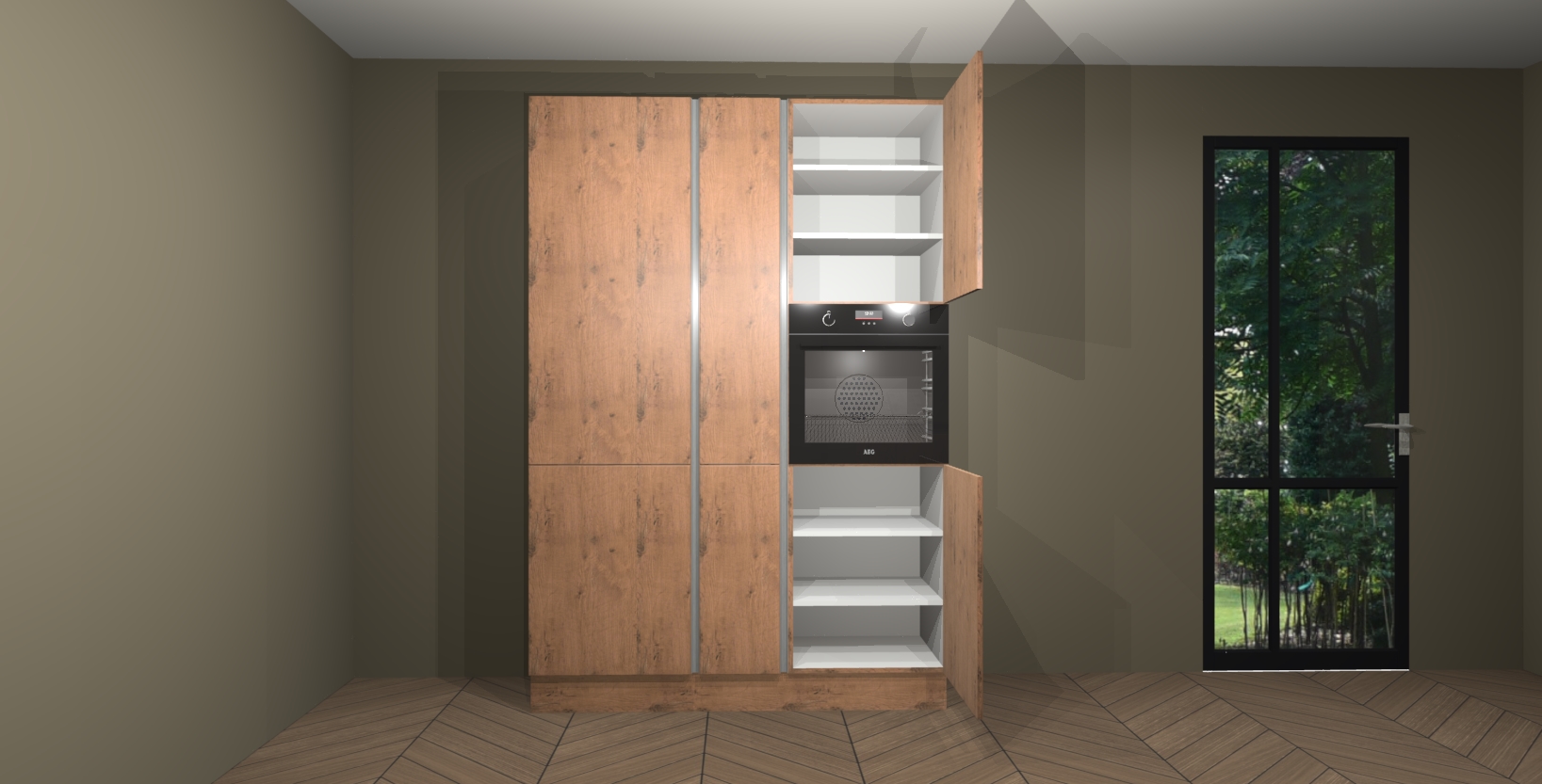 Met een modern, tijdloos design en ruime opslagruimte, zult u zich in no-time thuis voelen in uw nieuwe keuken. Uw leven wordt eenvoudiger met de soft-close deuren die voor het ultieme stille comfort zorgen - geen geluid dat u stoort terwijl u kookt. Ook is de keuken voorzien van 5 ingebouwde apparaten: een oven, inductie kookplaat, afzuigkap, vaatwasser en koelkast. Deze kunnen gemakkelijk na bestelling worden bijgewerkt naar AEG - waardoor uw luxe ervaring compleet is.