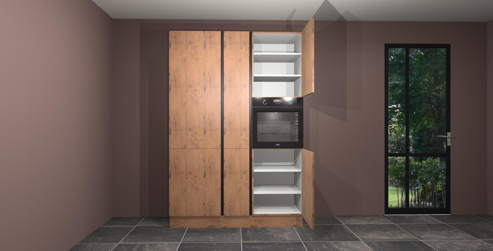 Met een modern, tijdloos design en ruime opslagruimte, zult u zich in no-time thuis voelen in uw nieuwe keuken. Uw leven wordt eenvoudiger met de soft-close deuren die voor het ultieme stille comfort zorgen - geen geluid dat u stoort terwijl u kookt. Ook is de keuken voorzien van 5 ingebouwde apparaten: een oven, inductie kookplaat, afzuigkap, vaatwasser en koelkast. Deze kunnen gemakkelijk na bestelling worden bijgewerkt naar AEG - waardoor uw luxe ervaring compleet is.