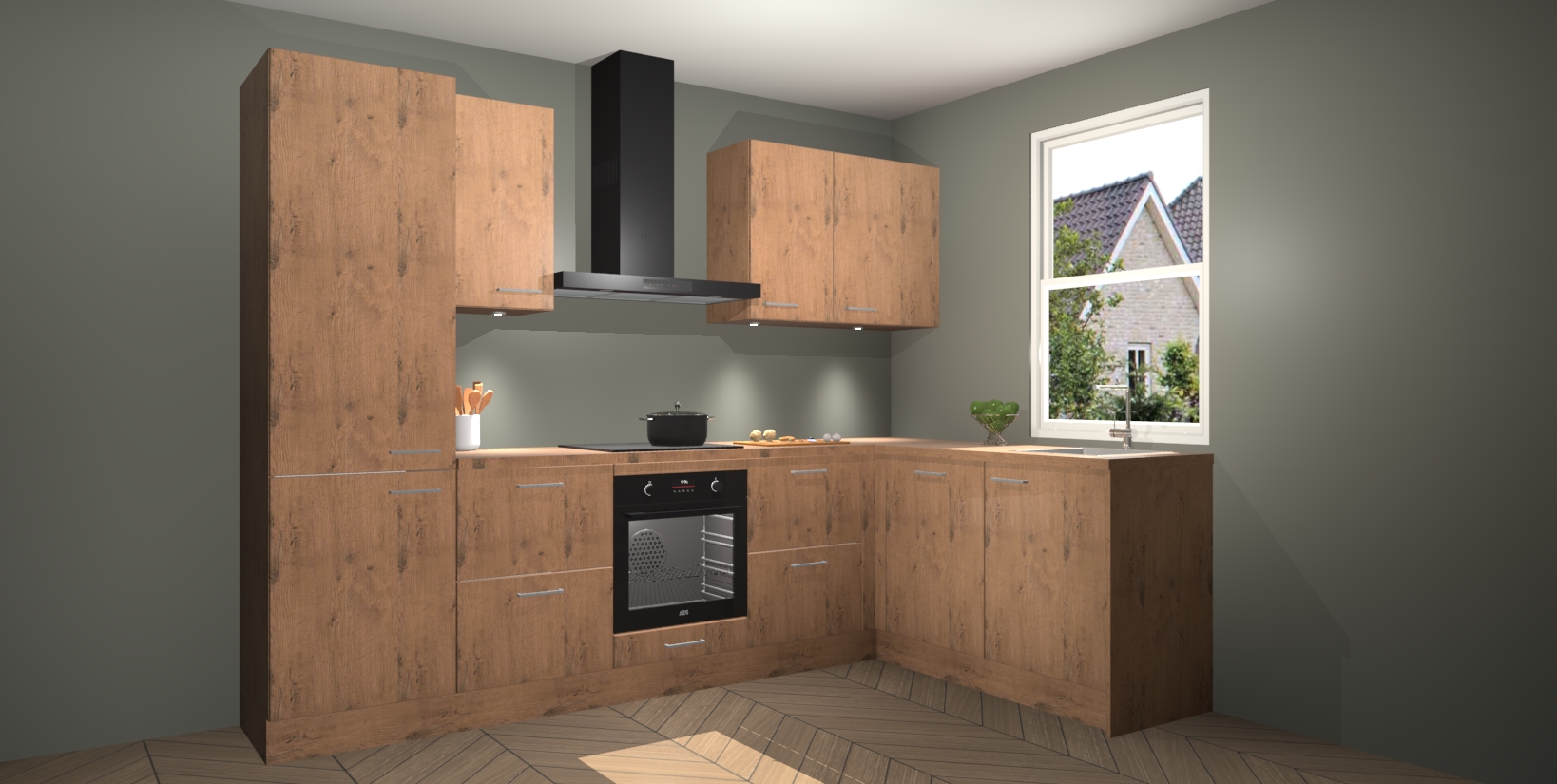 Maak kennis met de trendsettende en luxe Astoria Eiken keuken Bazel! Deze uitzonderlijke keuken van Duitse kwaliteit is stijlvol, modern en perfect om elk huis mee op te fleuren. De binnenkant van de kasten worden meegenomen in een bijpassende kleur om een samenhangende eigentijdse esthetiek te voltooien. U zult dol zijn op hoe uw pas gerenoveerde keuken eruitziet met de Astoria Eiken editie!