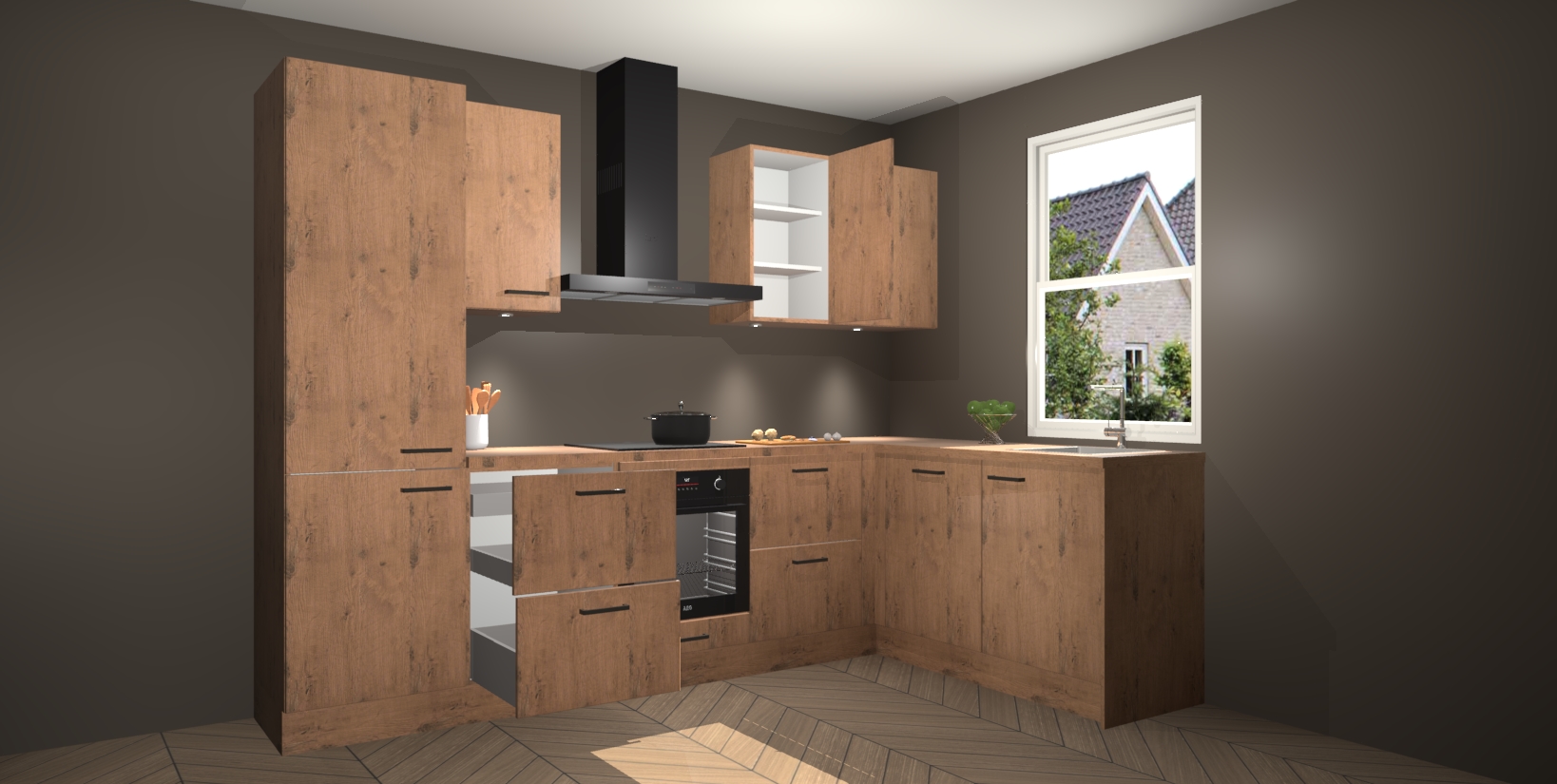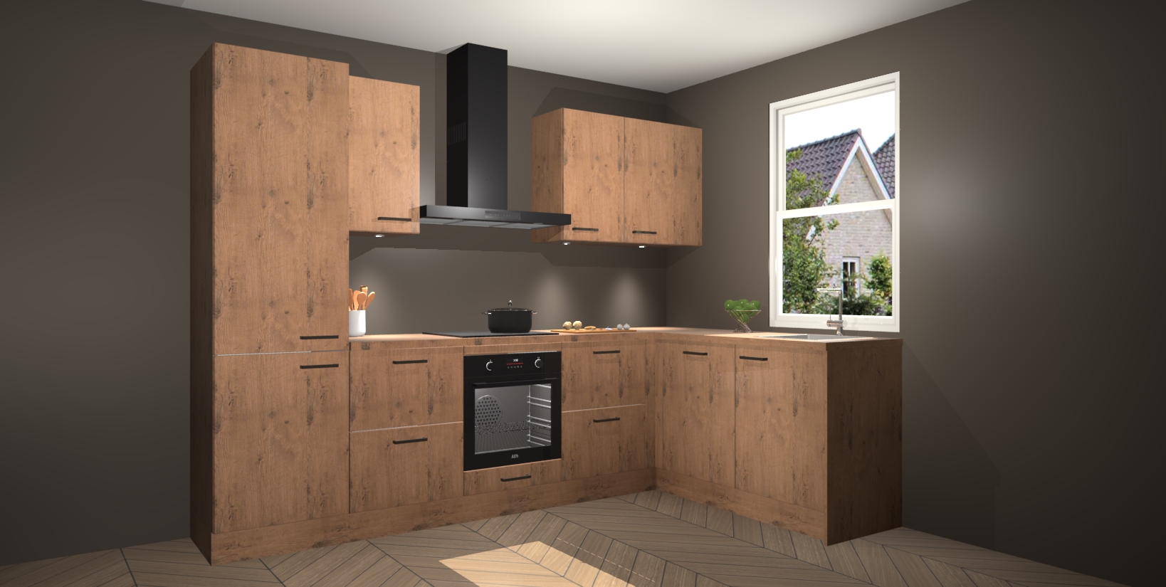 Maak kennis met de trendsettende en luxe Astoria Eiken keuken Bazel! Deze uitzonderlijke keuken van Duitse kwaliteit is stijlvol, modern en perfect om elk huis mee op te fleuren. De binnenkant van de kasten worden meegenomen in een bijpassende kleur om een samenhangende eigentijdse esthetiek te voltooien. U zult dol zijn op hoe uw pas gerenoveerde keuken eruitziet met de Astoria Eiken editie!