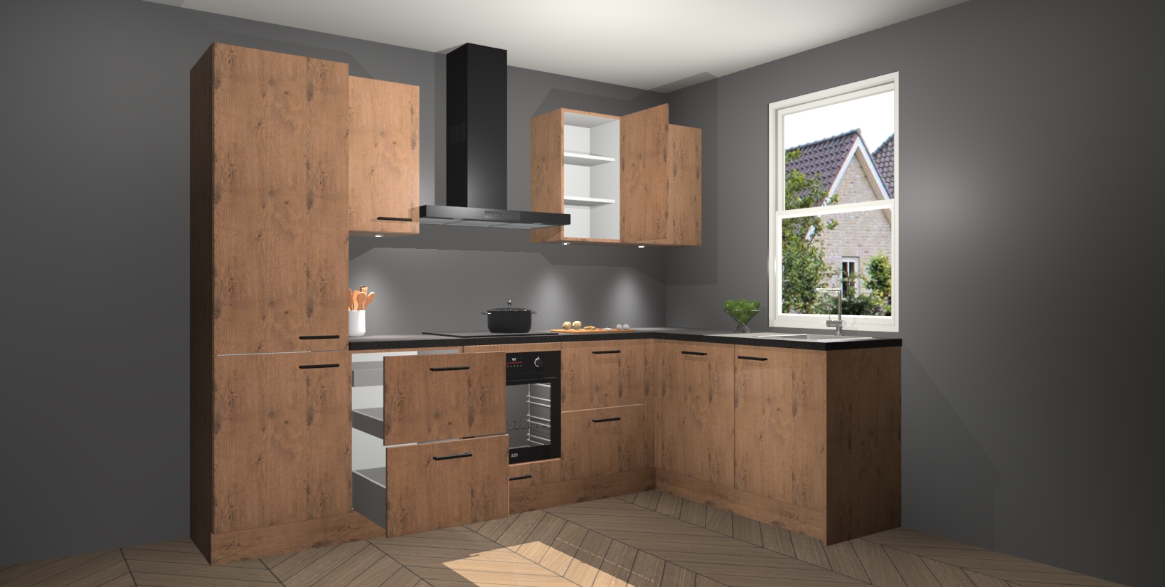 Maak kennis met de trendsettende en luxe Astoria Eiken keuken Bazel! Deze uitzonderlijke keuken van Duitse kwaliteit is stijlvol, modern en perfect om elk huis mee op te fleuren. De binnenkant van de kasten worden meegenomen in een bijpassende kleur om een samenhangende eigentijdse esthetiek te voltooien. U zult dol zijn op hoe uw pas gerenoveerde keuken eruitziet met de Astoria Eiken editie!