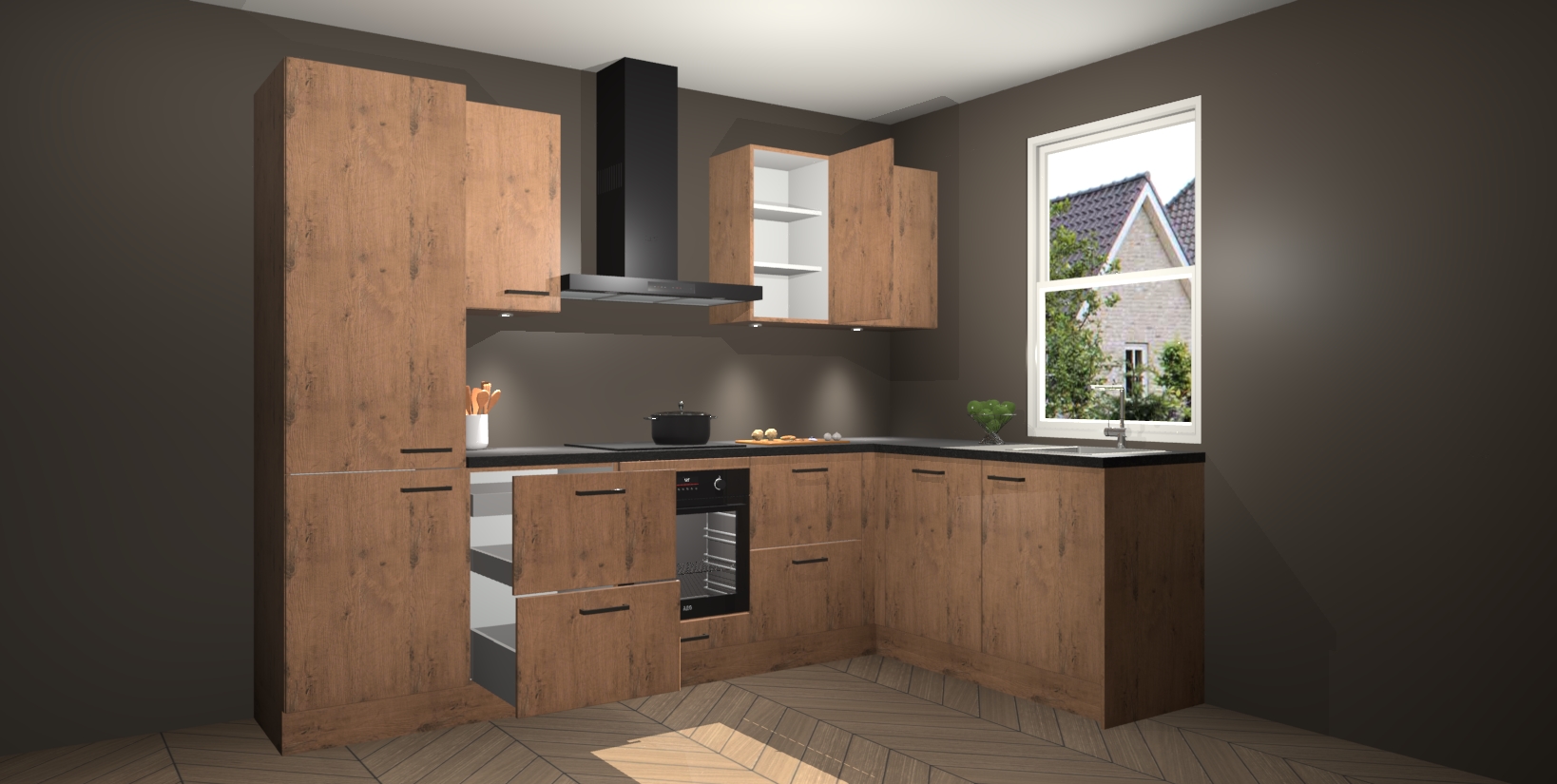 Maak kennis met de trendsettende en luxe Astoria Eiken keuken Bazel! Deze uitzonderlijke keuken van Duitse kwaliteit is stijlvol, modern en perfect om elk huis mee op te fleuren. De binnenkant van de kasten worden meegenomen in een bijpassende kleur om een samenhangende eigentijdse esthetiek te voltooien. U zult dol zijn op hoe uw pas gerenoveerde keuken eruitziet met de Astoria Eiken editie!