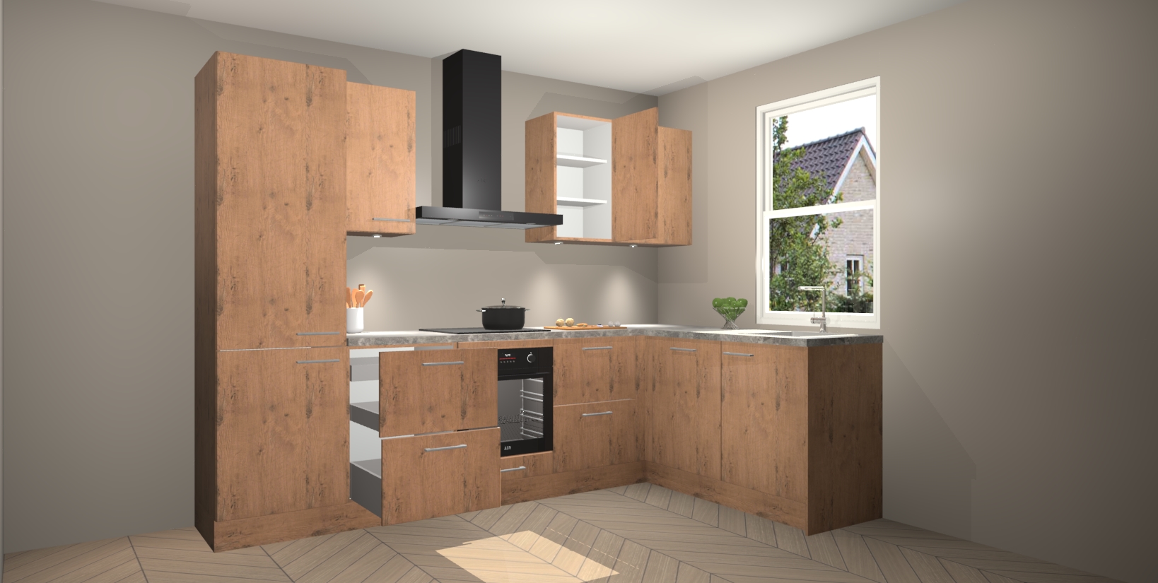 Maak kennis met de trendsettende en luxe Astoria Eiken keuken Bazel! Deze uitzonderlijke keuken van Duitse kwaliteit is stijlvol, modern en perfect om elk huis mee op te fleuren. De binnenkant van de kasten worden meegenomen in een bijpassende kleur om een samenhangende eigentijdse esthetiek te voltooien. U zult dol zijn op hoe uw pas gerenoveerde keuken eruitziet met de Astoria Eiken editie!