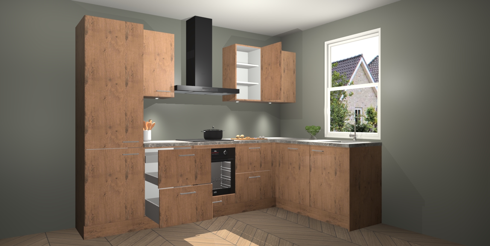 Maak kennis met de trendsettende en luxe Astoria Eiken keuken Bazel! Deze uitzonderlijke keuken van Duitse kwaliteit is stijlvol, modern en perfect om elk huis mee op te fleuren. De binnenkant van de kasten worden meegenomen in een bijpassende kleur om een samenhangende eigentijdse esthetiek te voltooien. U zult dol zijn op hoe uw pas gerenoveerde keuken eruitziet met de Astoria Eiken editie!