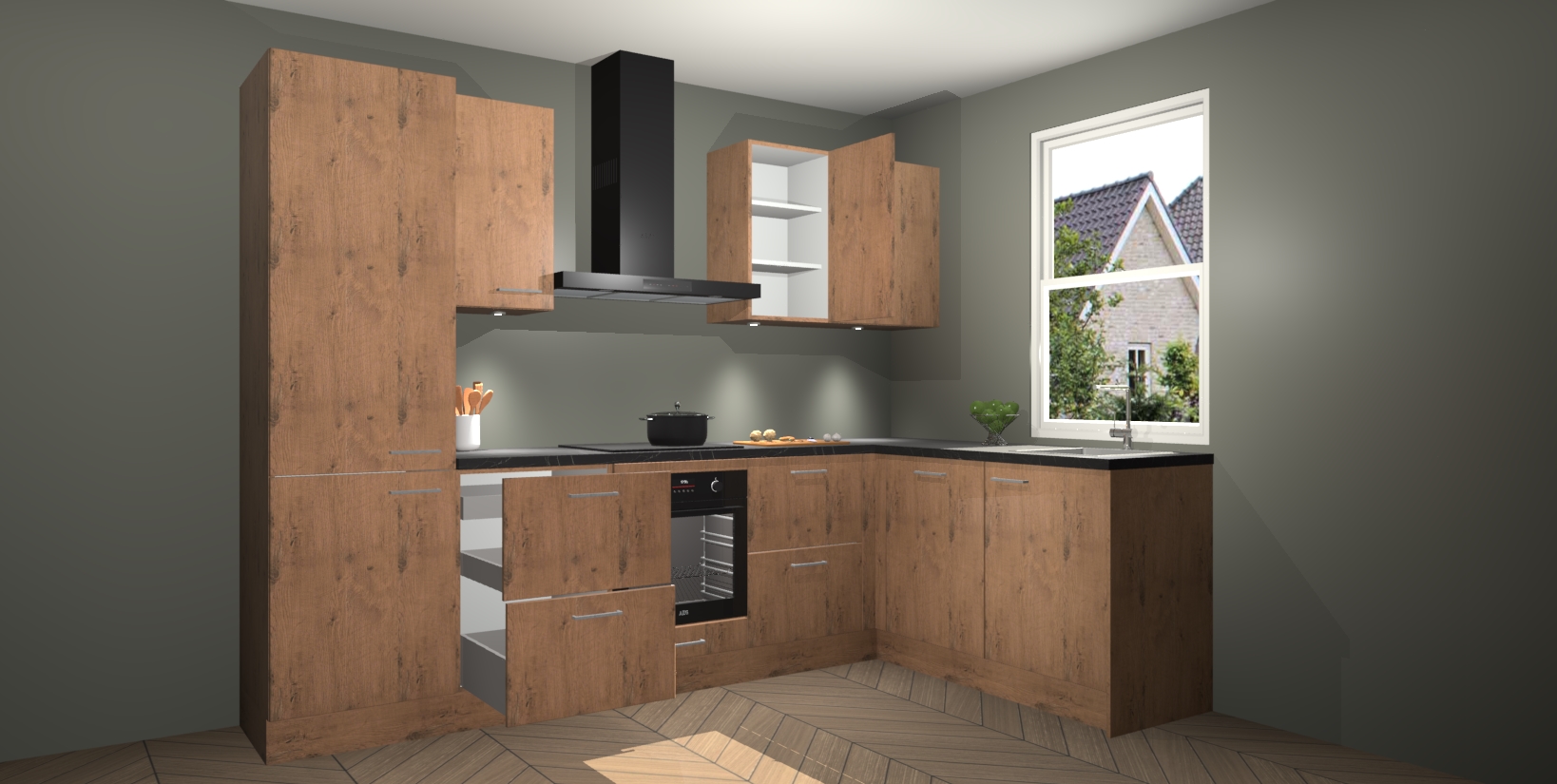 In deze box zijn alle kleuren verzameld van de deuren en werkbladen. Vraag de gratis kleurenbox aan en kijk thuis rustig verder!