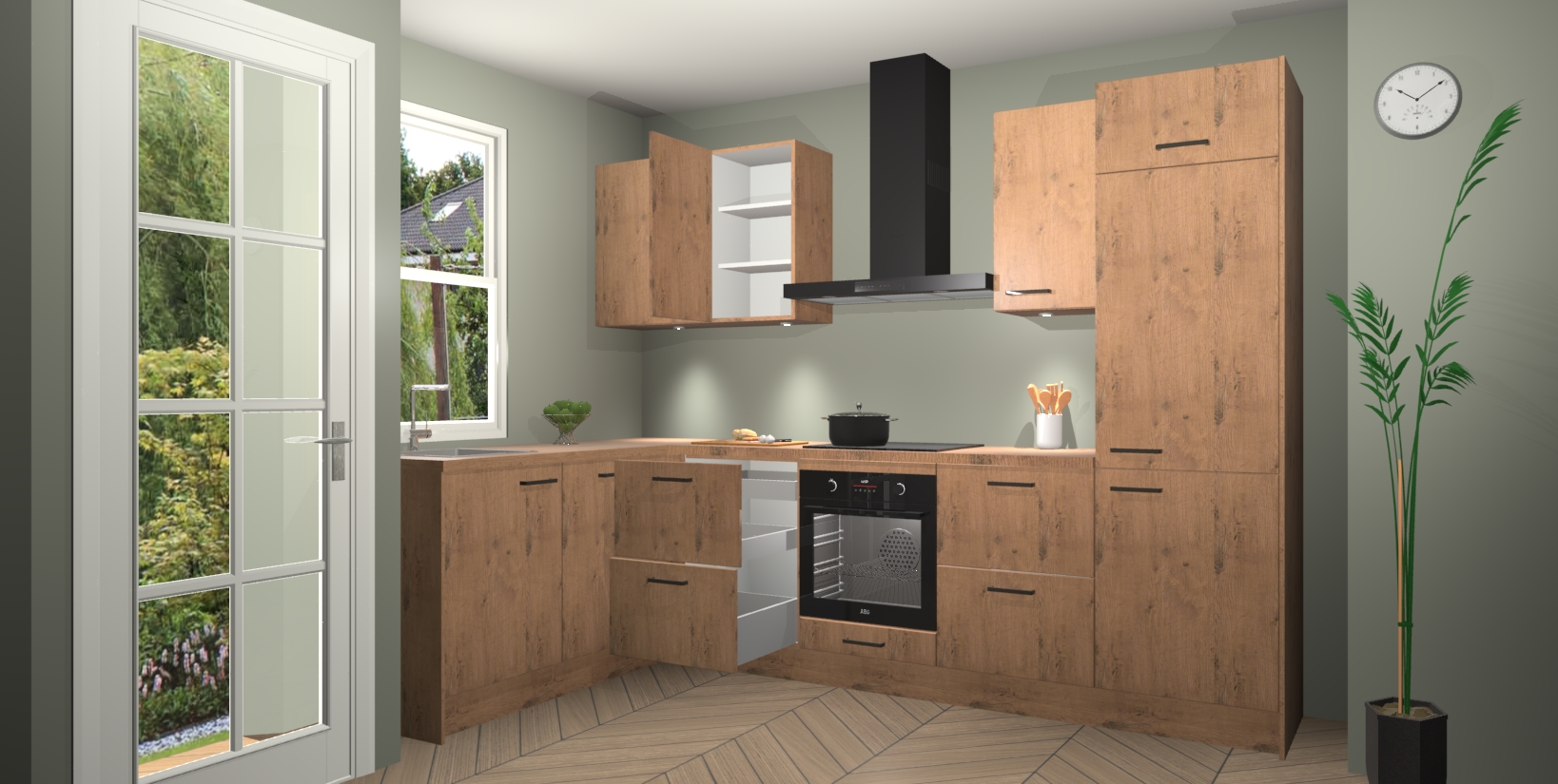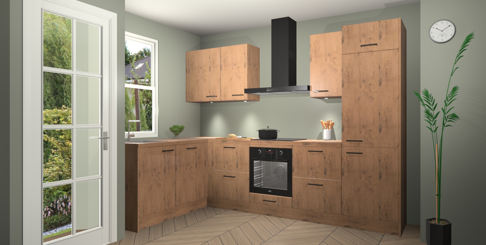 Bent u op zoek naar een strakke, moderne hoekkeuken die uw huis oppept en een moderne uitstraling geeft? Kijk dan niet verder dan de astoria eiken keuken Beijing. Deze verbluffende hoekkeuken tilt hedendaags design naar een hoger niveau. Qua stijl is deze chique hoekkeuken voorzien van astoria eiken accenten, om een strakke maar opvallende look te creëren. De binnenkant van de kasten is afgewerkt in dezelfde prachtige astoria eiken kleur voor extra esthetische aantrekkingskracht.