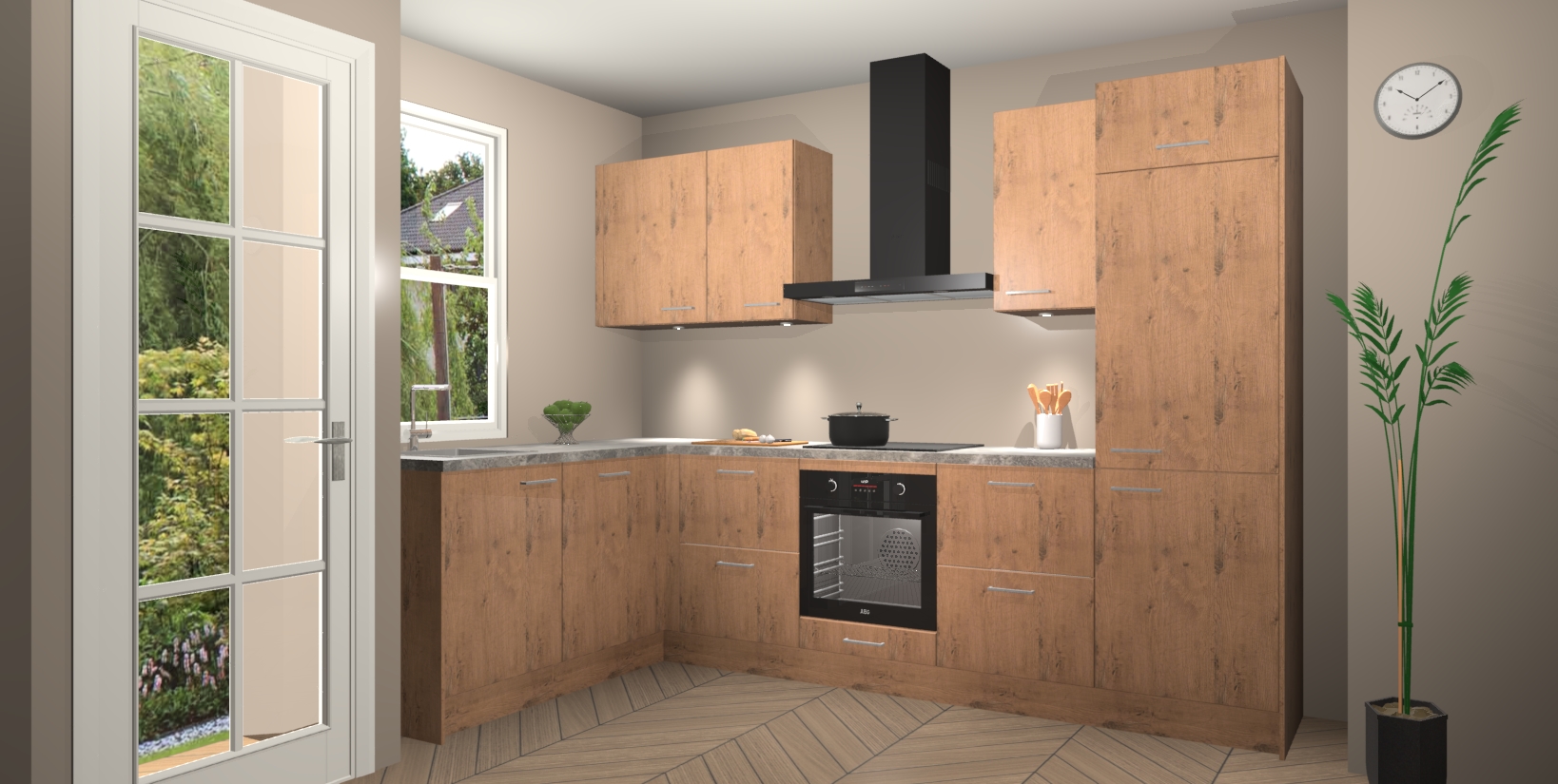 Bent u op zoek naar een strakke, moderne hoekkeuken die uw huis oppept en een moderne uitstraling geeft? Kijk dan niet verder dan de astoria eiken keuken Beijing. Deze verbluffende hoekkeuken tilt hedendaags design naar een hoger niveau. Qua stijl is deze chique hoekkeuken voorzien van astoria eiken accenten, om een strakke maar opvallende look te creëren. De binnenkant van de kasten is afgewerkt in dezelfde prachtige astoria eiken kleur voor extra esthetische aantrekkingskracht.