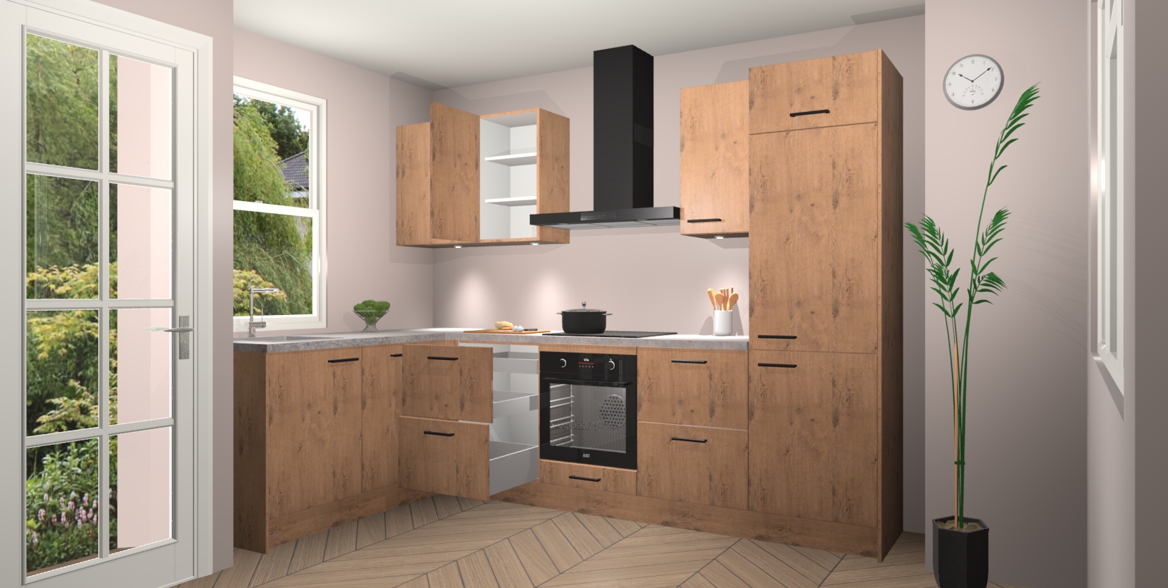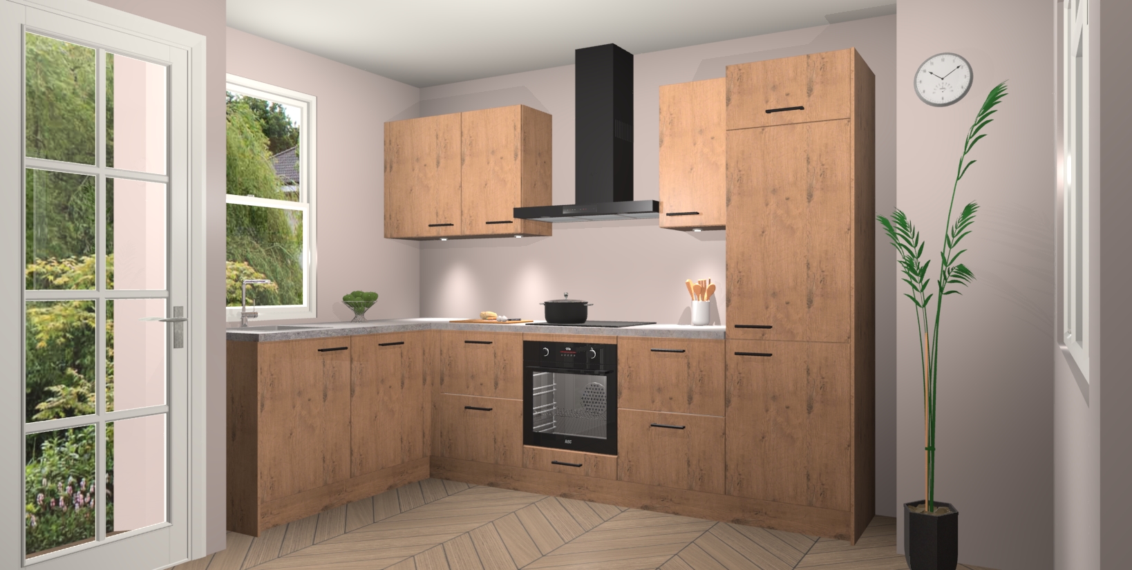 Bent u op zoek naar een strakke, moderne hoekkeuken die uw huis oppept en een moderne uitstraling geeft? Kijk dan niet verder dan de astoria eiken keuken Beijing. Deze verbluffende hoekkeuken tilt hedendaags design naar een hoger niveau. Qua stijl is deze chique hoekkeuken voorzien van astoria eiken accenten, om een strakke maar opvallende look te creëren. De binnenkant van de kasten is afgewerkt in dezelfde prachtige astoria eiken kleur voor extra esthetische aantrekkingskracht.