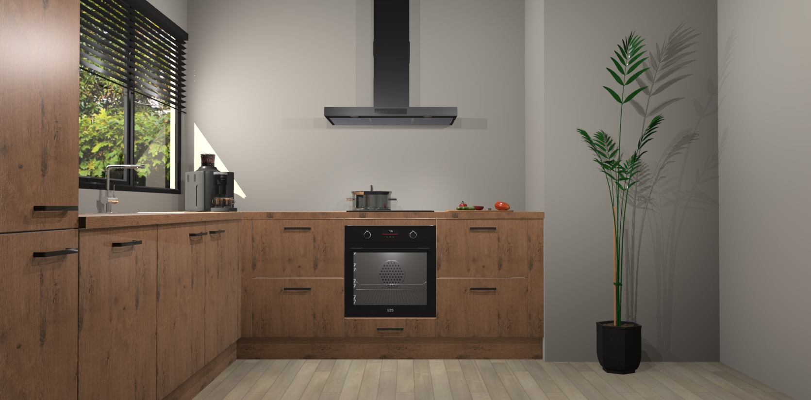 Met een modern, tijdloos design en ruime opslagruimte, zult u zich in no-time thuis voelen in uw nieuwe keuken. Uw leven wordt eenvoudiger met de soft-close deuren die voor het ultieme stille comfort zorgen - geen geluid dat u stoort terwijl u kookt. Ook is de keuken voorzien van 5 ingebouwde apparaten: een oven, inductie kookplaat, afzuigkap, vaatwasser en koelkast. Deze kunnen gemakkelijk na bestelling worden bijgewerkt naar AEG - waardoor uw luxe ervaring compleet is.