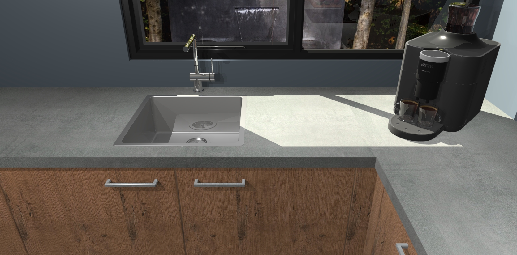 - De spoelbak is nog niet in gevreesd. Dit dient tijdens het werk gedaan te worden