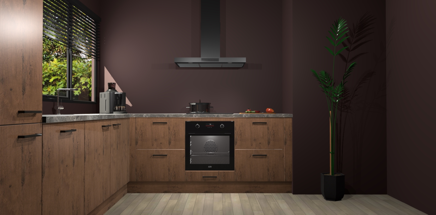 Met een modern, tijdloos design en ruime opslagruimte, zult u zich in no-time thuis voelen in uw nieuwe keuken. Uw leven wordt eenvoudiger met de soft-close deuren die voor het ultieme stille comfort zorgen - geen geluid dat u stoort terwijl u kookt. Ook is de keuken voorzien van 5 ingebouwde apparaten: een oven, inductie kookplaat, afzuigkap, vaatwasser en koelkast. Deze kunnen gemakkelijk na bestelling worden bijgewerkt naar AEG - waardoor uw luxe ervaring compleet is.