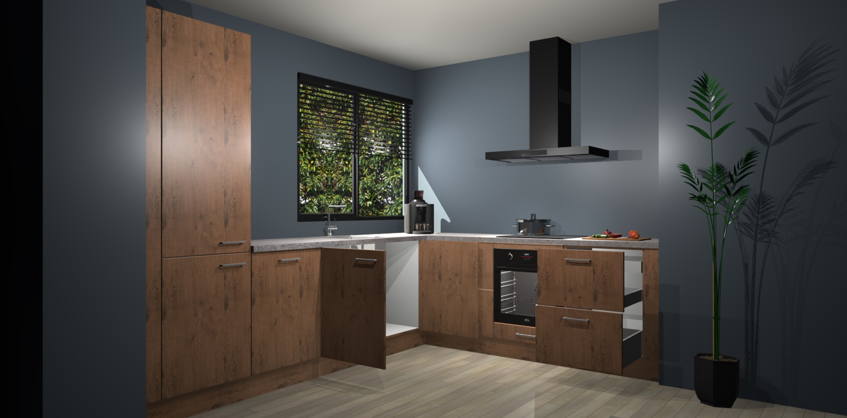 Met een modern, tijdloos design en ruime opslagruimte, zult u zich in no-time thuis voelen in uw nieuwe keuken. Uw leven wordt eenvoudiger met de soft-close deuren die voor het ultieme stille comfort zorgen - geen geluid dat u stoort terwijl u kookt. Ook is de keuken voorzien van 5 ingebouwde apparaten: een oven, inductie kookplaat, afzuigkap, vaatwasser en koelkast. Deze kunnen gemakkelijk na bestelling worden bijgewerkt naar AEG - waardoor uw luxe ervaring compleet is.