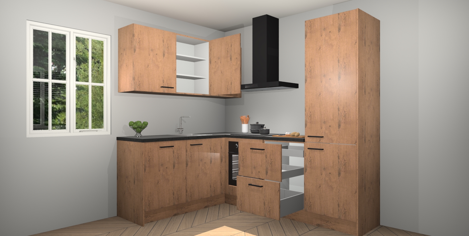 Maak kennis met de Astoria Eiken keuken Boekarest, een moderne hoekkeuken waar al uw vrienden en familie jaloers op zullen zijn! Het verbluffende mooie ontwerp past in elk interieur en is een ideale keuze voor wie op zoek is naar een klassieke, maar verfijnde look.