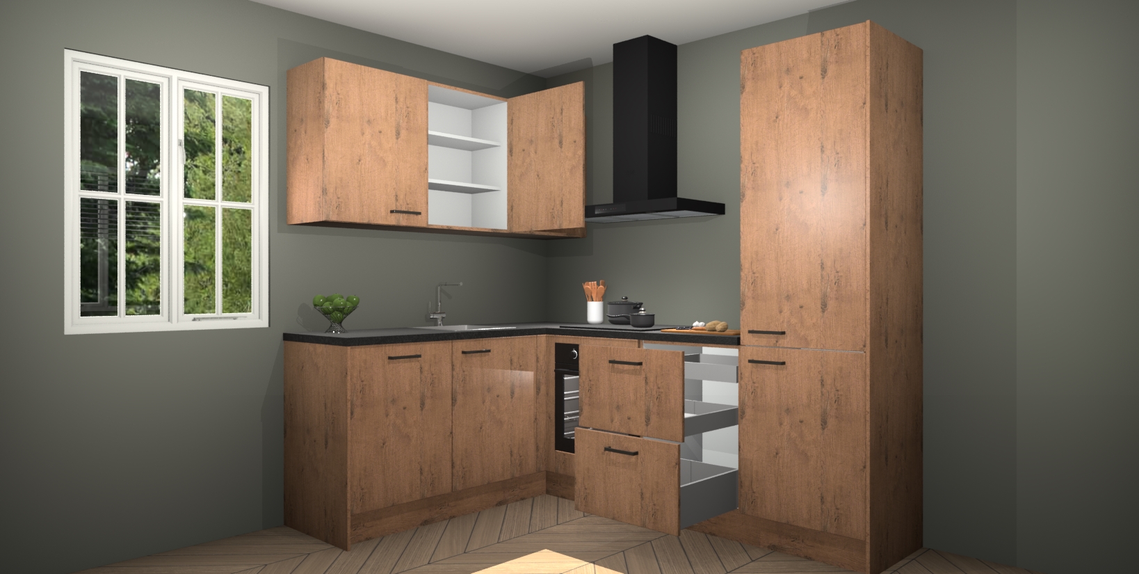 Maak kennis met de Astoria Eiken keuken Boekarest, een moderne hoekkeuken waar al uw vrienden en familie jaloers op zullen zijn! Het verbluffende mooie ontwerp past in elk interieur en is een ideale keuze voor wie op zoek is naar een klassieke, maar verfijnde look.