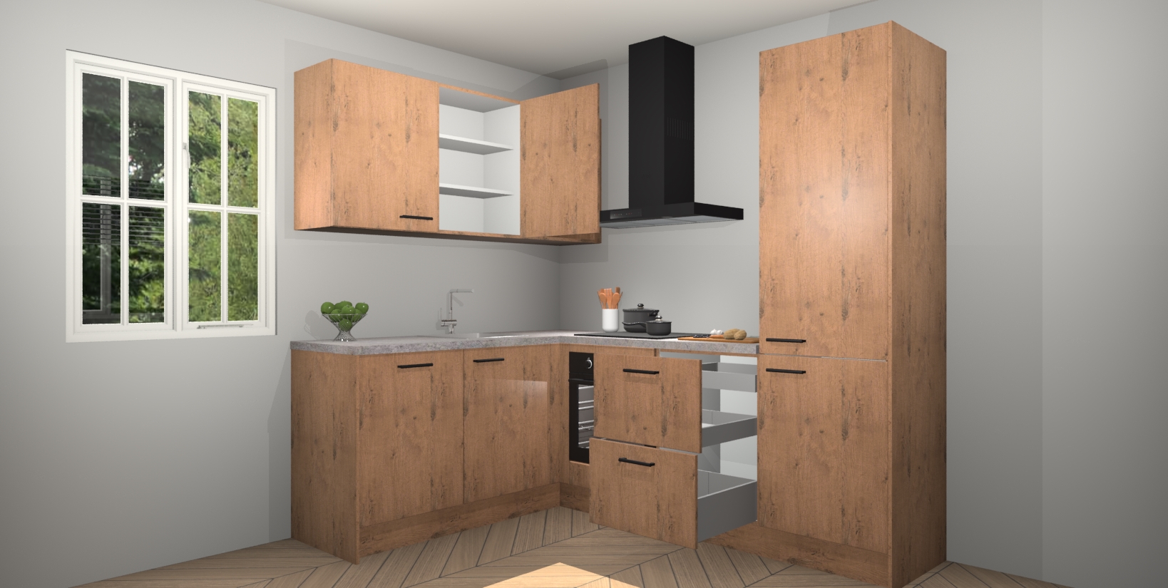 Maak kennis met de Astoria Eiken keuken Boekarest, een moderne hoekkeuken waar al uw vrienden en familie jaloers op zullen zijn! Het verbluffende mooie ontwerp past in elk interieur en is een ideale keuze voor wie op zoek is naar een klassieke, maar verfijnde look.