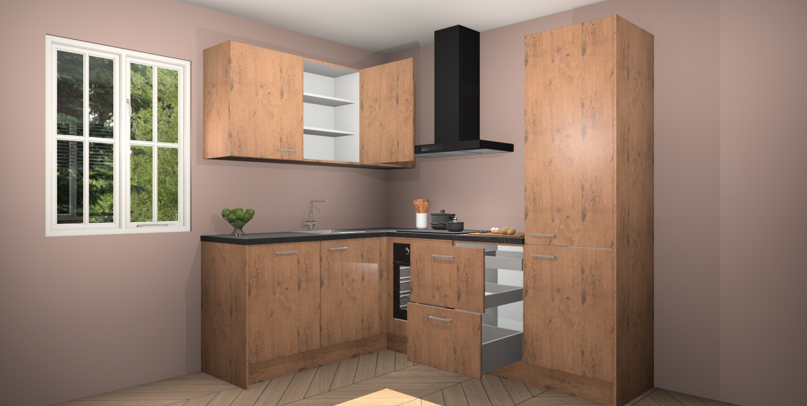 Maak kennis met de Astoria Eiken keuken Boekarest, een moderne hoekkeuken waar al uw vrienden en familie jaloers op zullen zijn! Het verbluffende mooie ontwerp past in elk interieur en is een ideale keuze voor wie op zoek is naar een klassieke, maar verfijnde look.