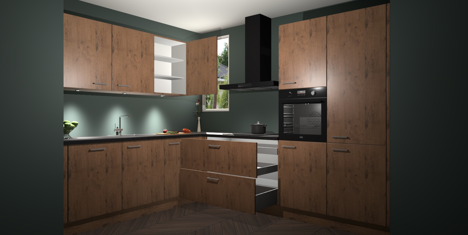 In deze box zijn alle kleuren verzameld van de deuren en werkbladen. Vraag de gratis kleurenbox aan en kijk thuis rustig verder!
