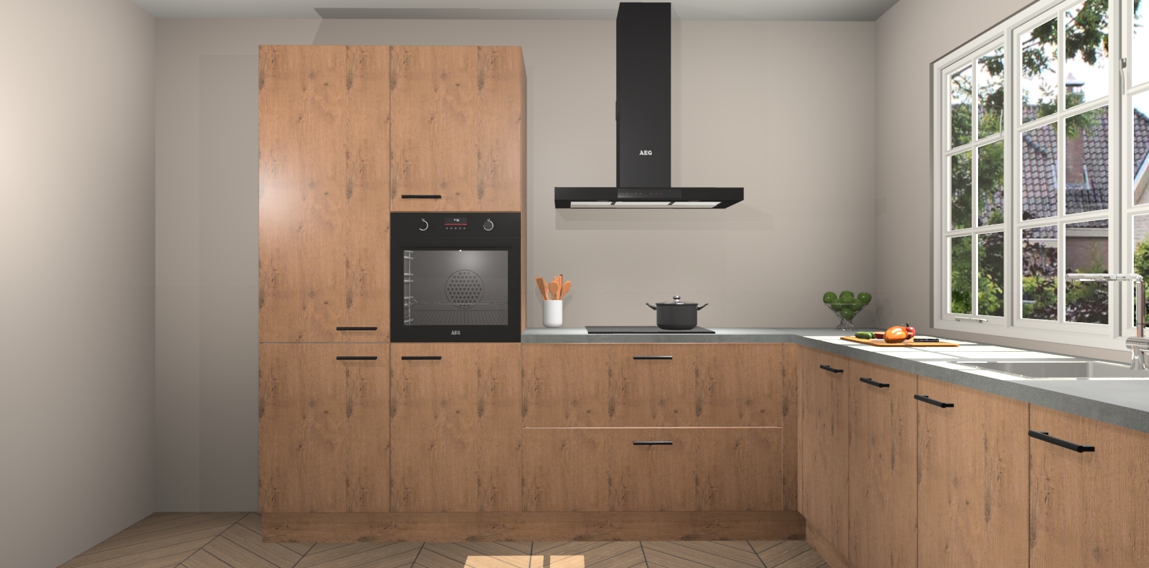 De keuken heeft veel opbergruimte, waardoor u alle ingrediënten gemakkelijk bereikbaar hebt staan. En daarnaast bevat deze volledig uitgeruste keuken ook 5 ingebouwde apparaten: een oven, inductiekookplaat, afzuigkap, vaatwasser en koelkast. Deze zijn heel eenvoudig na bestellen te upgraden naar AEG als u dit wilt. Bovendien zijn de softclose-kastdeuren ideaal; geef ze gewoon even een tikje en ze sluiten automatisch met geruisloze precisie.