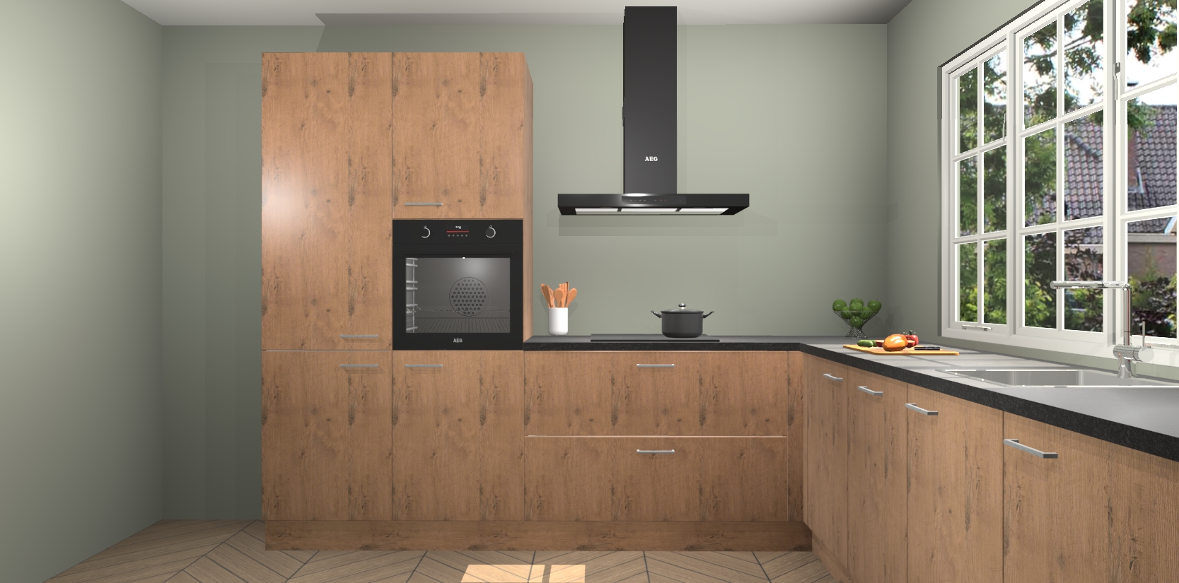 De keuken heeft veel opbergruimte, waardoor u alle ingrediënten gemakkelijk bereikbaar hebt staan. En daarnaast bevat deze volledig uitgeruste keuken ook 5 ingebouwde apparaten: een oven, inductiekookplaat, afzuigkap, vaatwasser en koelkast. Deze zijn heel eenvoudig na bestellen te upgraden naar AEG als u dit wilt. Bovendien zijn de softclose-kastdeuren ideaal; geef ze gewoon even een tikje en ze sluiten automatisch met geruisloze precisie.