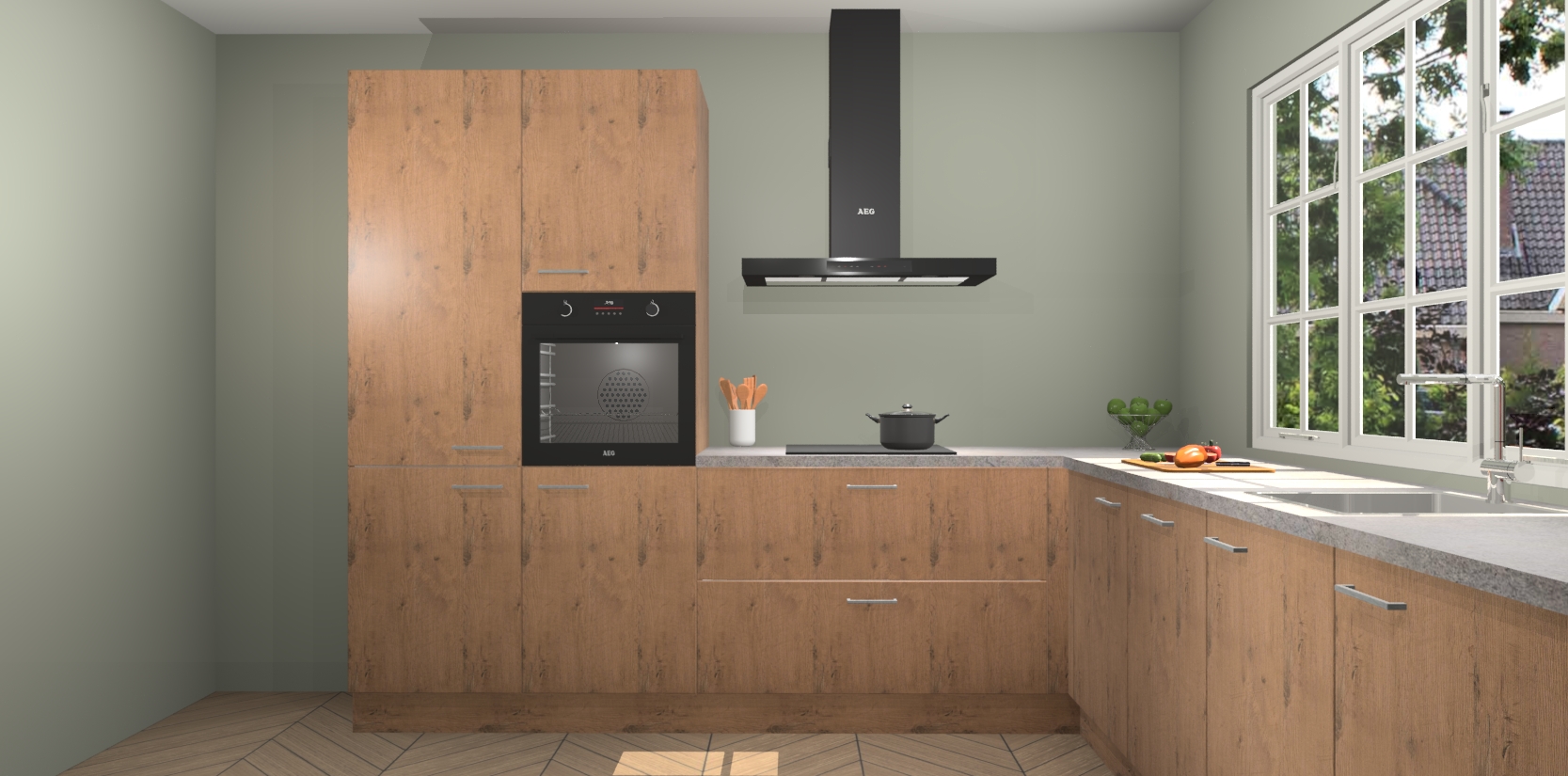 De keuken heeft veel opbergruimte, waardoor u alle ingrediënten gemakkelijk bereikbaar hebt staan. En daarnaast bevat deze volledig uitgeruste keuken ook 5 ingebouwde apparaten: een oven, inductiekookplaat, afzuigkap, vaatwasser en koelkast. Deze zijn heel eenvoudig na bestellen te upgraden naar AEG als u dit wilt. Bovendien zijn de softclose-kastdeuren ideaal; geef ze gewoon even een tikje en ze sluiten automatisch met geruisloze precisie.