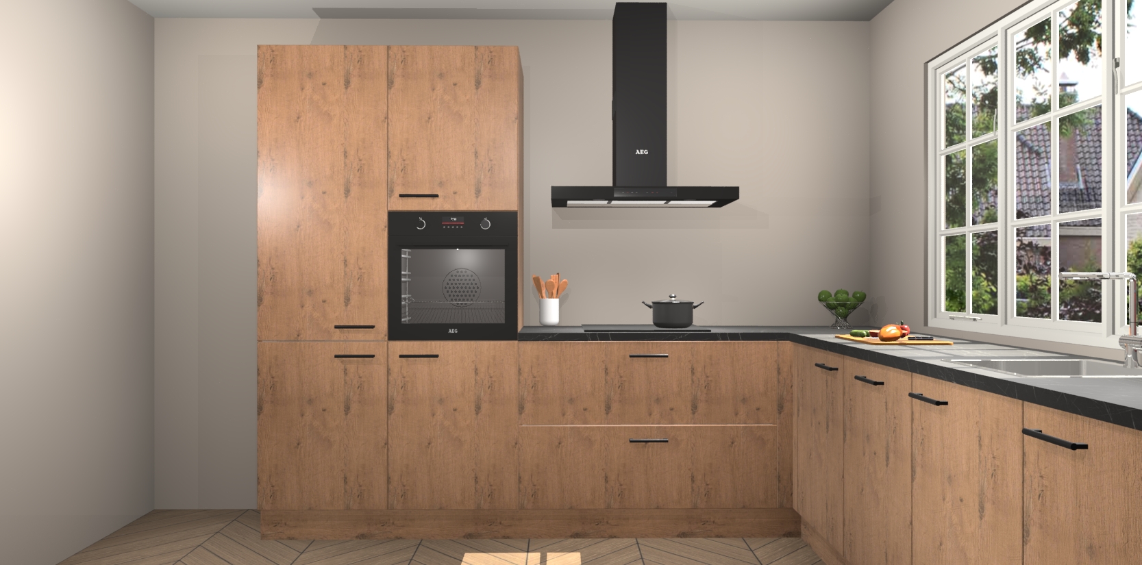 De keuken heeft veel opbergruimte, waardoor u alle ingrediënten gemakkelijk bereikbaar hebt staan. En daarnaast bevat deze volledig uitgeruste keuken ook 5 ingebouwde apparaten: een oven, inductiekookplaat, afzuigkap, vaatwasser en koelkast. Deze zijn heel eenvoudig na bestellen te upgraden naar AEG als u dit wilt. Bovendien zijn de softclose-kastdeuren ideaal; geef ze gewoon even een tikje en ze sluiten automatisch met geruisloze precisie.