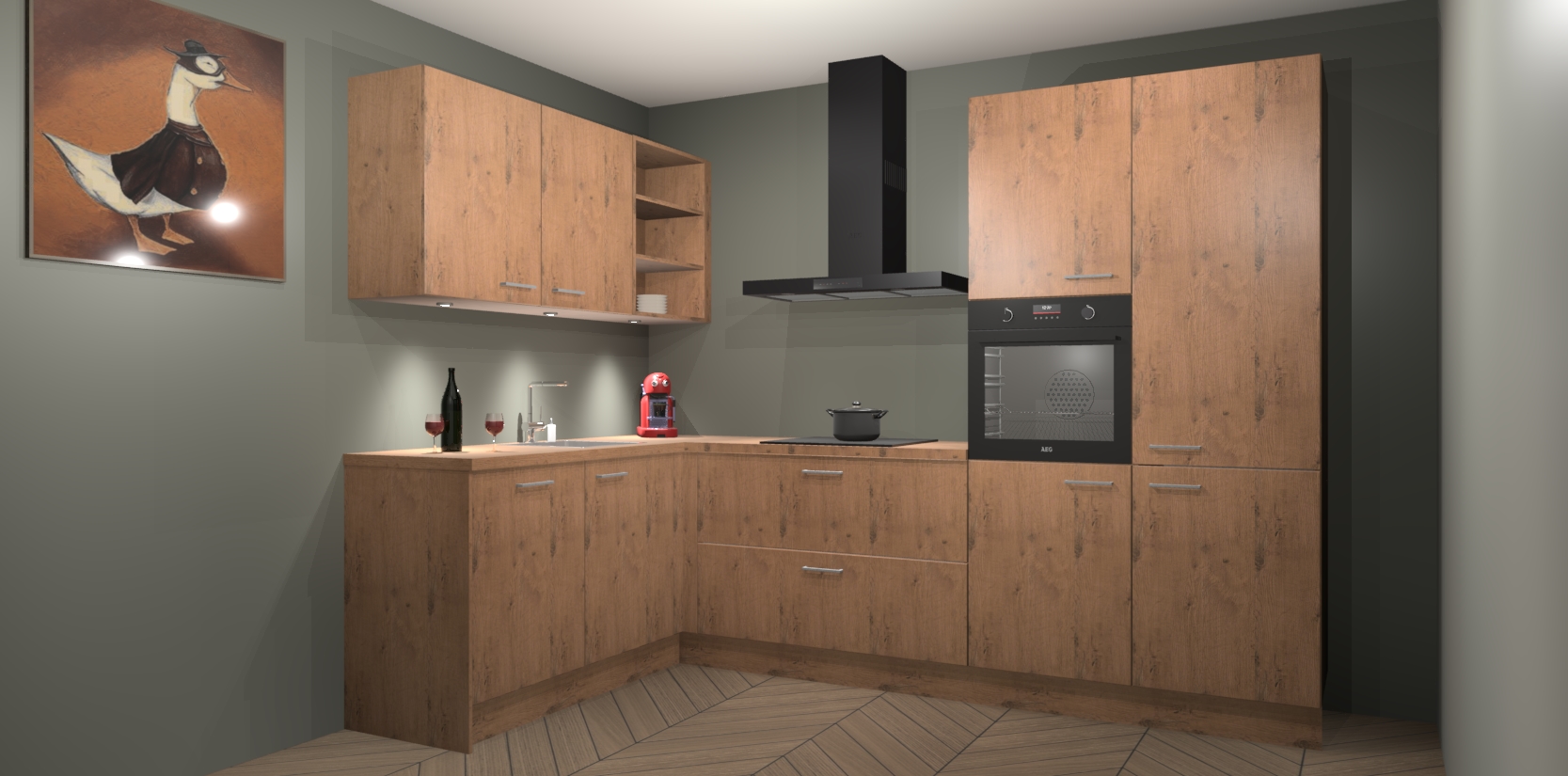 De Astoria Eiken keuken Cognac is een adembenemend ontwerp met een modern en tijdloos uiterlijk. Deze luxe keuken straalt echt aristocratisch uit, waardoor uw koken plezieriger zal worden! Het prachtige design begint bij de hoekkeuken, wat perfect past bij elk type interieur. Bovendien bevat deze hoogwaardige set vijf inbouwapparaten - van oven tot koelkast - die via bestelling naar AEG geüpgraded kunnen worden!