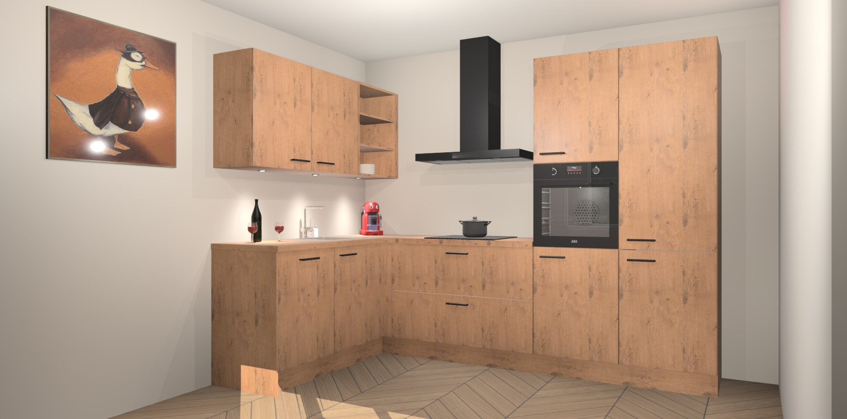 De Astoria Eiken keuken Cognac is een adembenemend ontwerp met een modern en tijdloos uiterlijk. Deze luxe keuken straalt echt aristocratisch uit, waardoor uw koken plezieriger zal worden! Het prachtige design begint bij de hoekkeuken, wat perfect past bij elk type interieur. Bovendien bevat deze hoogwaardige set vijf inbouwapparaten - van oven tot koelkast - die via bestelling naar AEG geüpgraded kunnen worden!