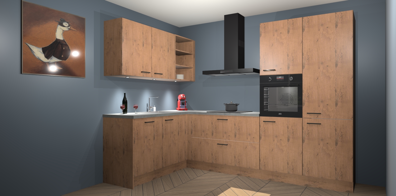 De Astoria Eiken keuken Cognac is een adembenemend ontwerp met een modern en tijdloos uiterlijk. Deze luxe keuken straalt echt aristocratisch uit, waardoor uw koken plezieriger zal worden! Het prachtige design begint bij de hoekkeuken, wat perfect past bij elk type interieur. Bovendien bevat deze hoogwaardige set vijf inbouwapparaten - van oven tot koelkast - die via bestelling naar AEG geüpgraded kunnen worden!