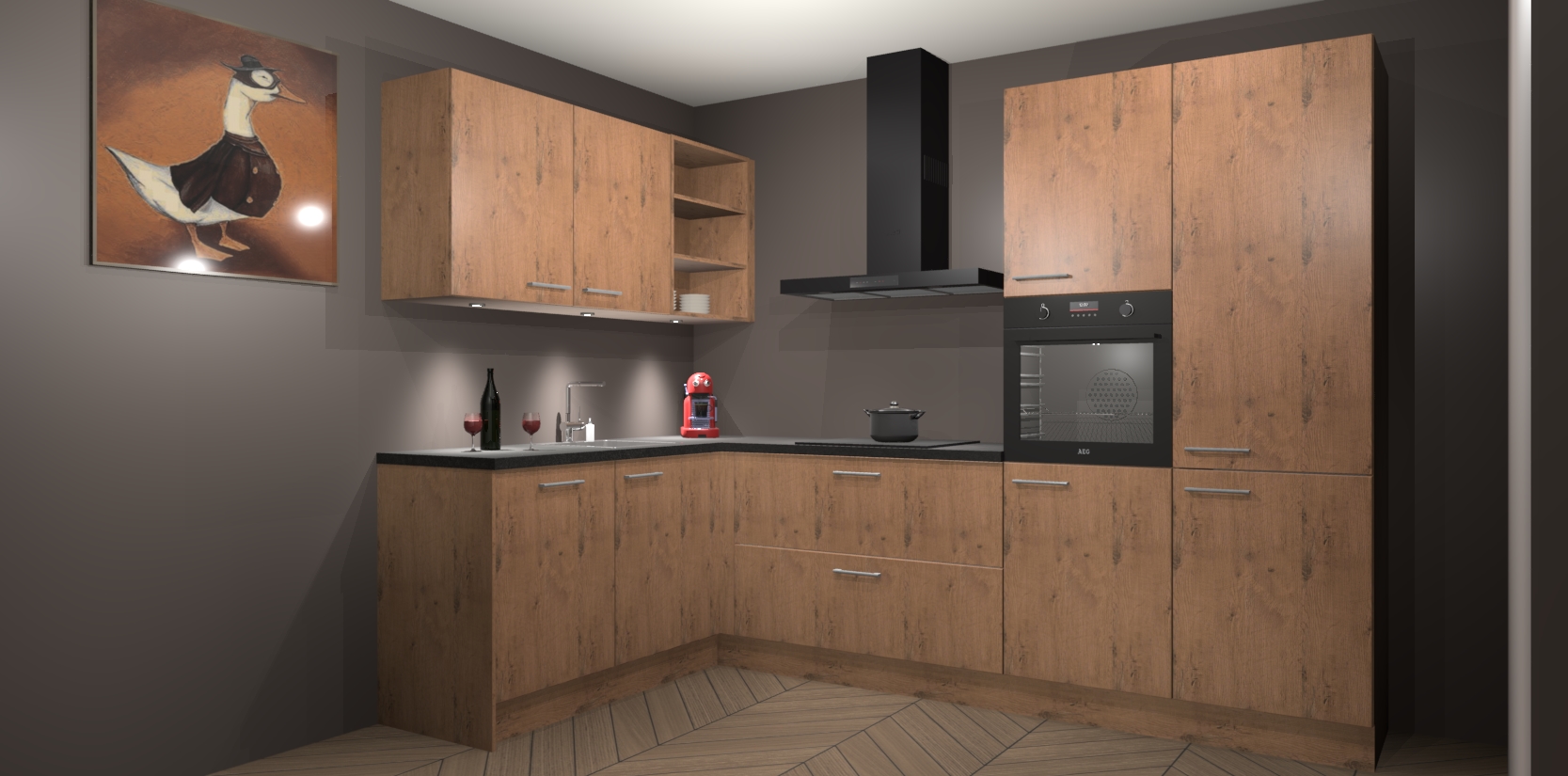 De Astoria Eiken keuken Cognac is een adembenemend ontwerp met een modern en tijdloos uiterlijk. Deze luxe keuken straalt echt aristocratisch uit, waardoor uw koken plezieriger zal worden! Het prachtige design begint bij de hoekkeuken, wat perfect past bij elk type interieur. Bovendien bevat deze hoogwaardige set vijf inbouwapparaten - van oven tot koelkast - die via bestelling naar AEG geüpgraded kunnen worden!