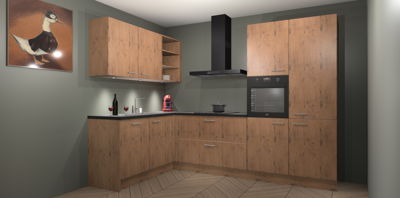 De Astoria Eiken keuken Cognac is een adembenemend ontwerp met een modern en tijdloos uiterlijk. Deze luxe keuken straalt echt aristocratisch uit, waardoor uw koken plezieriger zal worden! Het prachtige design begint bij de hoekkeuken, wat perfect past bij elk type interieur. Bovendien bevat deze hoogwaardige set vijf inbouwapparaten - van oven tot koelkast - die via bestelling naar AEG geüpgraded kunnen worden!