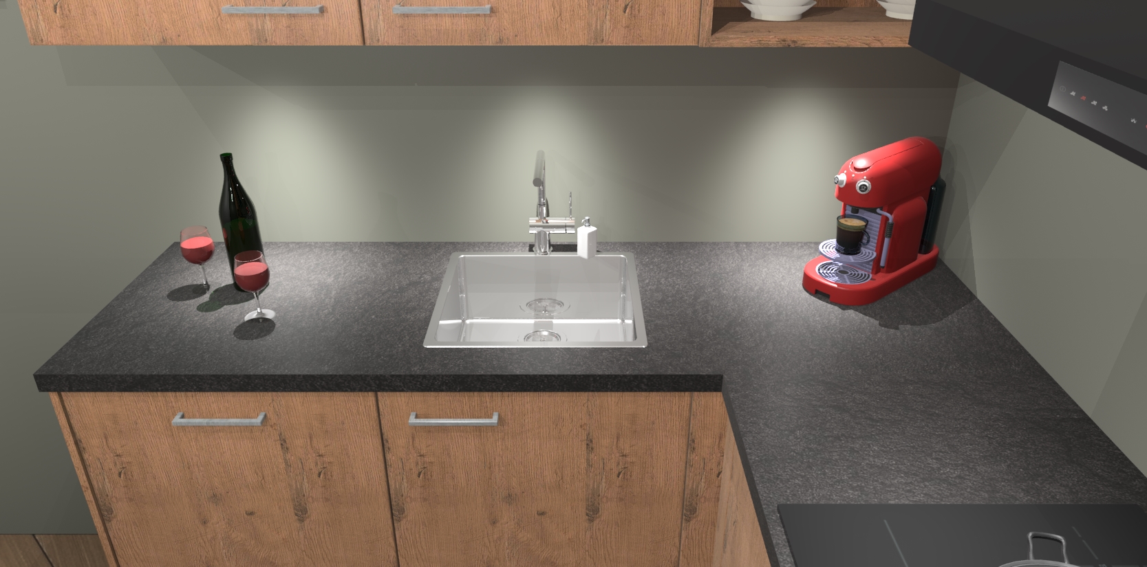 - Bij een hoekwerkblad zijn de hoeken in gevreesd en op maat gemaakt