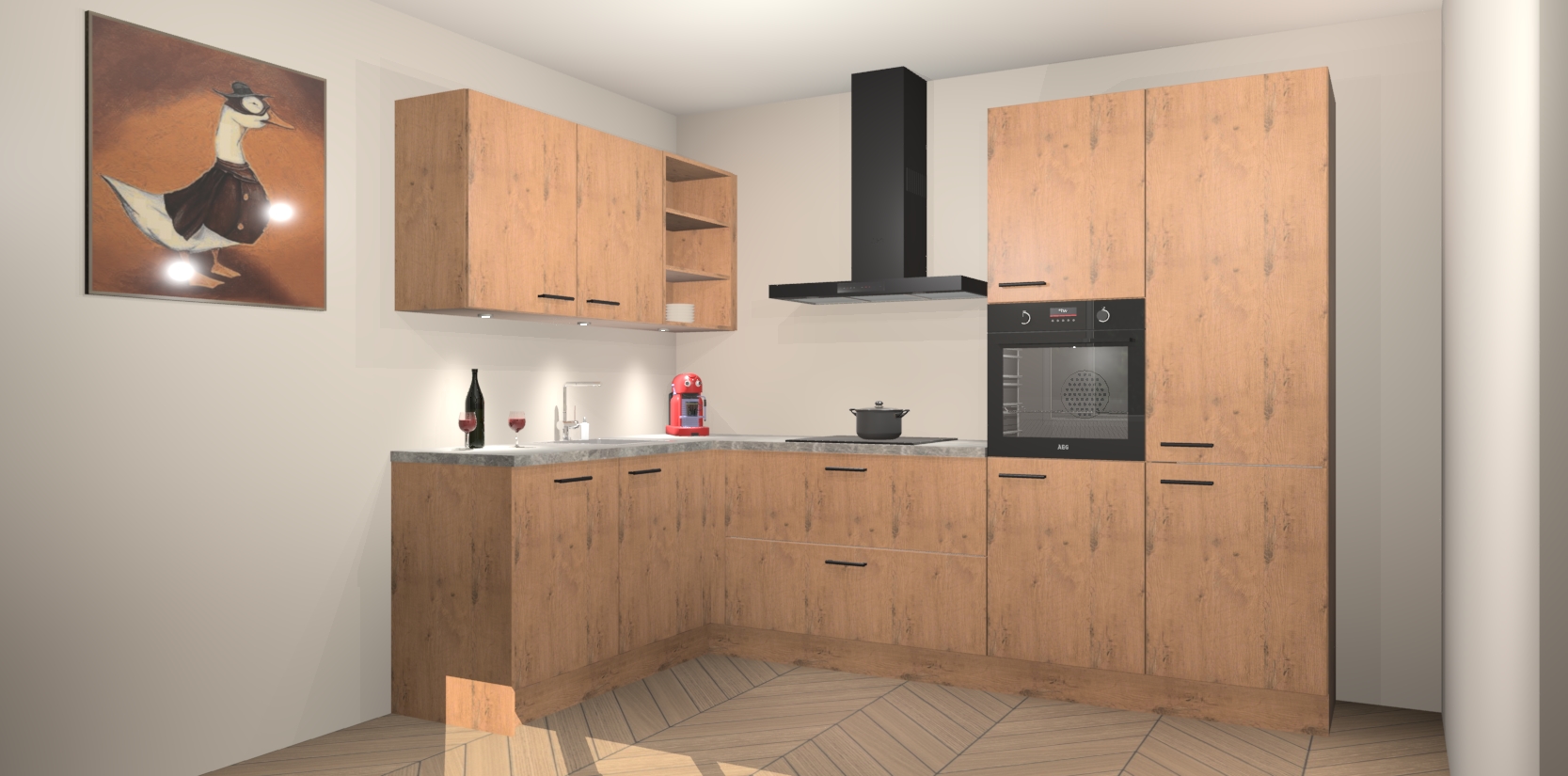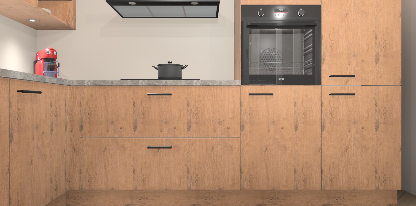 De Astoria Eiken keuken Cognac is een adembenemend ontwerp met een modern en tijdloos uiterlijk. Deze luxe keuken straalt echt aristocratisch uit, waardoor uw koken plezieriger zal worden! Het prachtige design begint bij de hoekkeuken, wat perfect past bij elk type interieur. Bovendien bevat deze hoogwaardige set vijf inbouwapparaten - van oven tot koelkast - die via bestelling naar AEG geüpgraded kunnen worden!
