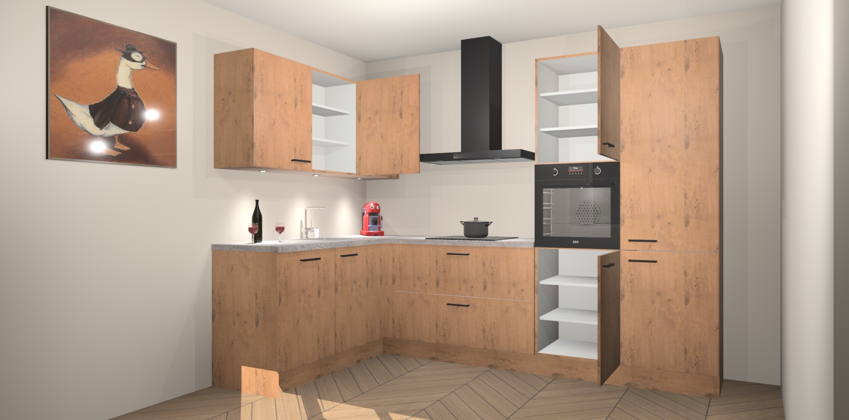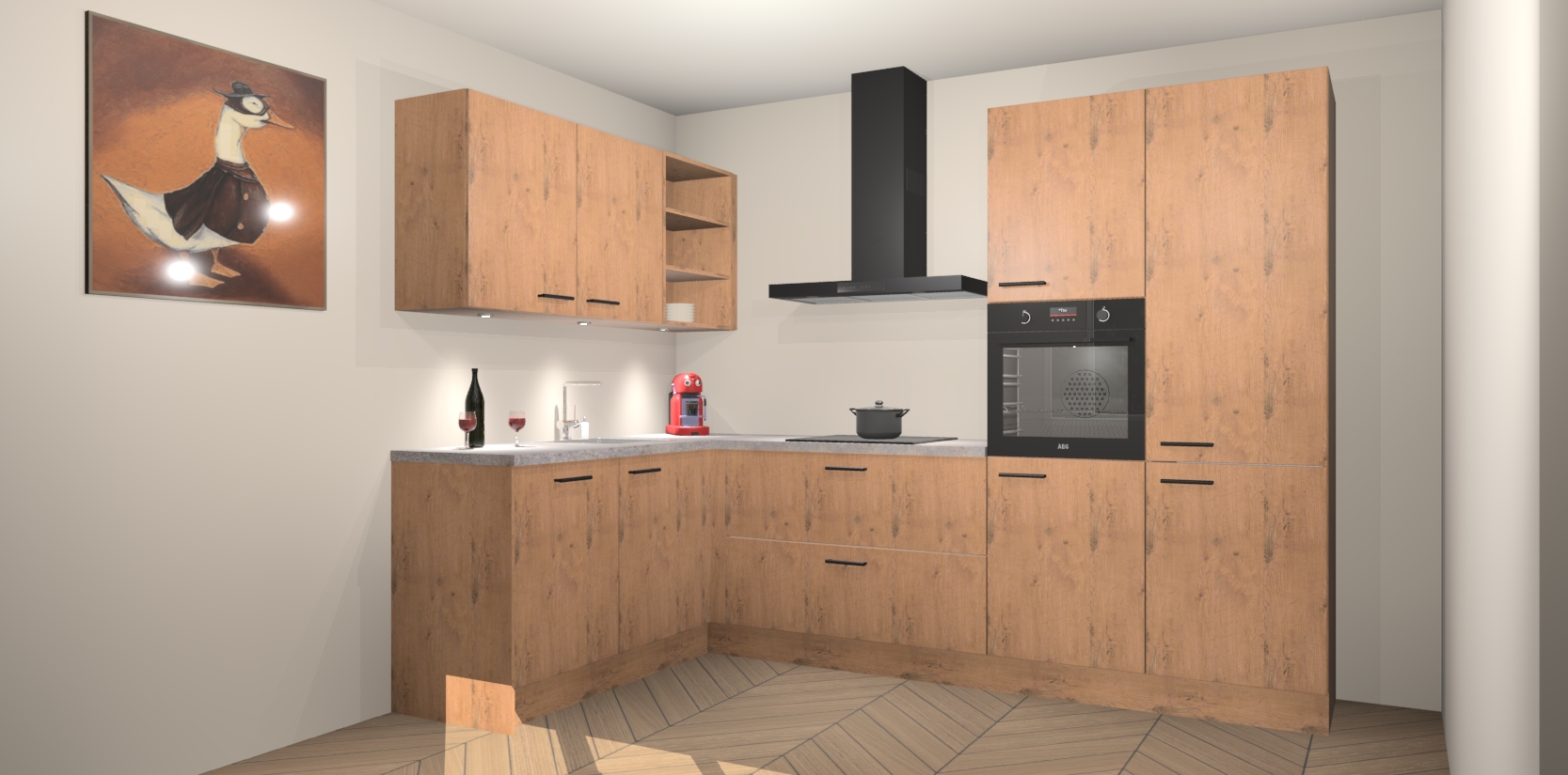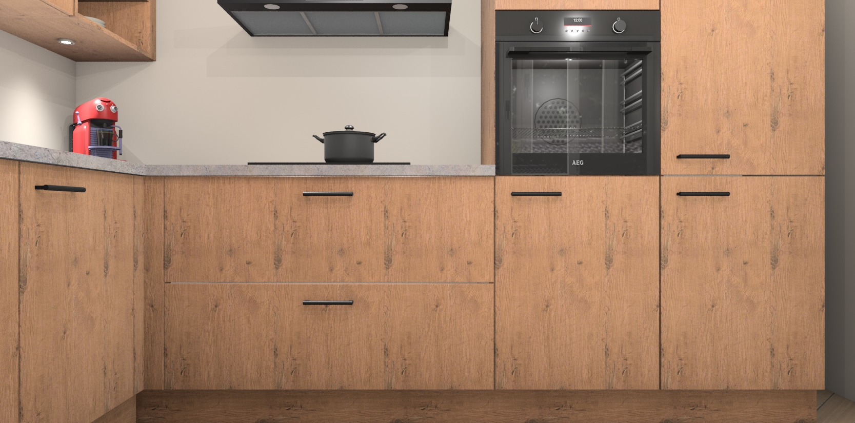 De Astoria Eiken keuken Cognac is een adembenemend ontwerp met een modern en tijdloos uiterlijk. Deze luxe keuken straalt echt aristocratisch uit, waardoor uw koken plezieriger zal worden! Het prachtige design begint bij de hoekkeuken, wat perfect past bij elk type interieur. Bovendien bevat deze hoogwaardige set vijf inbouwapparaten - van oven tot koelkast - die via bestelling naar AEG geüpgraded kunnen worden!