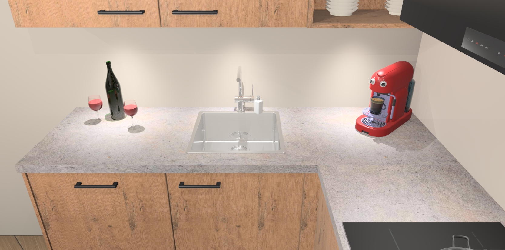 - Bij een hoekwerkblad zijn de hoeken in gevreesd en op maat gemaakt