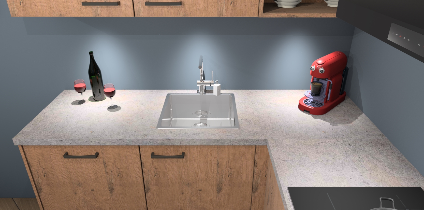 - Bij een hoekwerkblad zijn de hoeken in gevreesd en op maat gemaakt