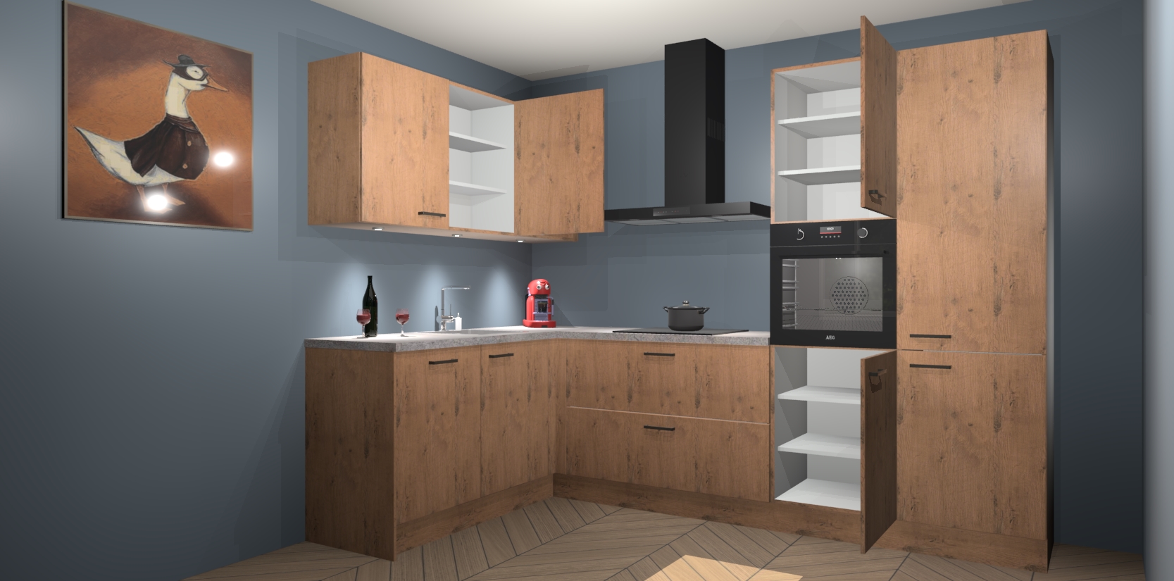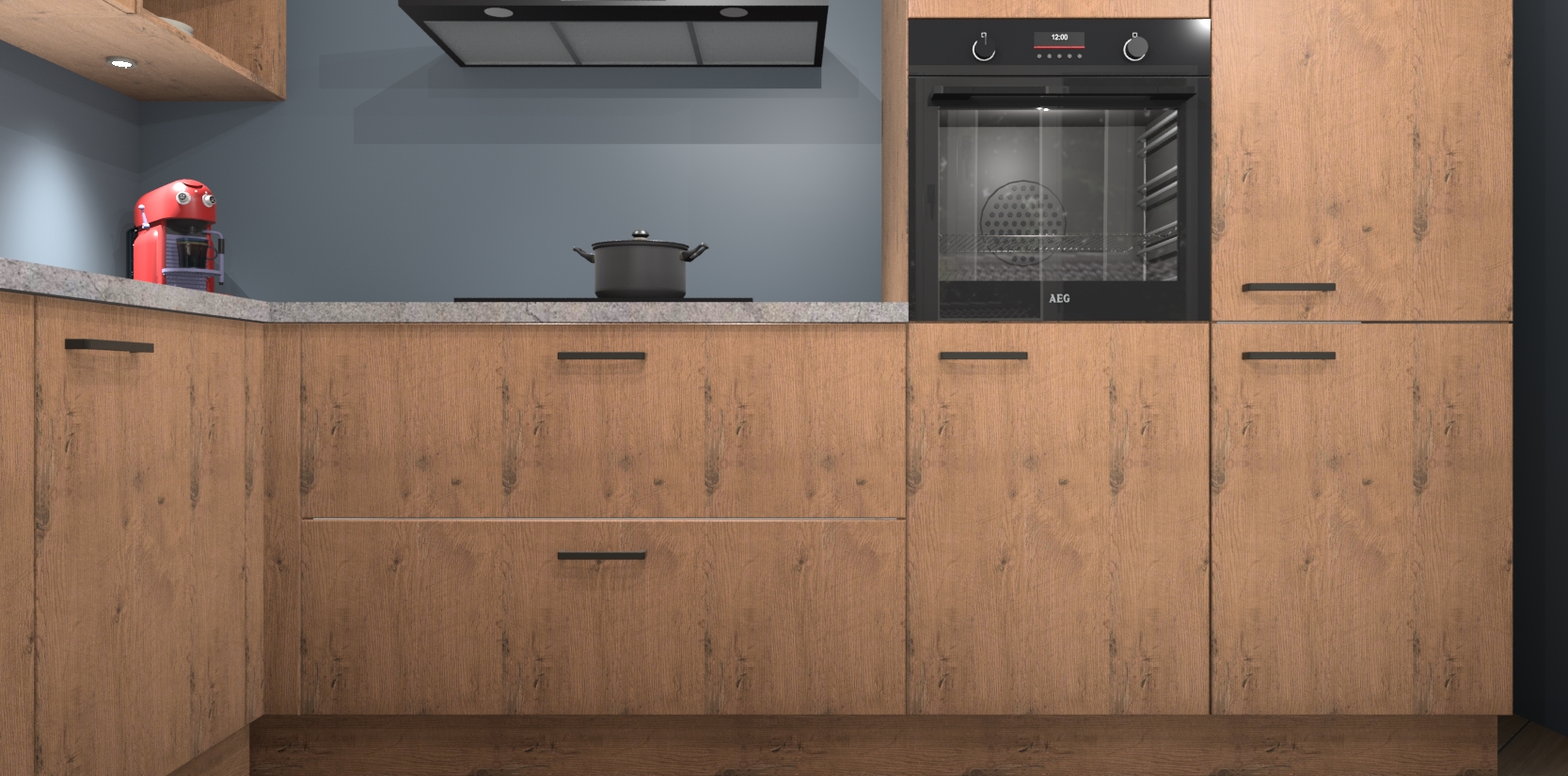 De Astoria Eiken keuken Cognac is een adembenemend ontwerp met een modern en tijdloos uiterlijk. Deze luxe keuken straalt echt aristocratisch uit, waardoor uw koken plezieriger zal worden! Het prachtige design begint bij de hoekkeuken, wat perfect past bij elk type interieur. Bovendien bevat deze hoogwaardige set vijf inbouwapparaten - van oven tot koelkast - die via bestelling naar AEG geüpgraded kunnen worden!