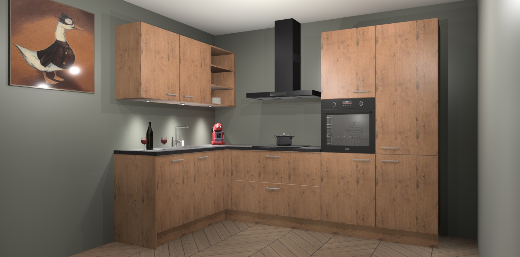 De Astoria Eiken keuken Cognac is een adembenemend ontwerp met een modern en tijdloos uiterlijk. Deze luxe keuken straalt echt aristocratisch uit, waardoor uw koken plezieriger zal worden! Het prachtige design begint bij de hoekkeuken, wat perfect past bij elk type interieur. Bovendien bevat deze hoogwaardige set vijf inbouwapparaten - van oven tot koelkast - die via bestelling naar AEG geüpgraded kunnen worden!