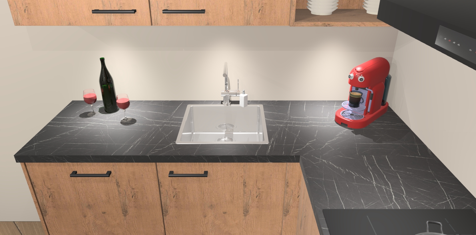 - Bij een hoekwerkblad zijn de hoeken in gevreesd en op maat gemaakt