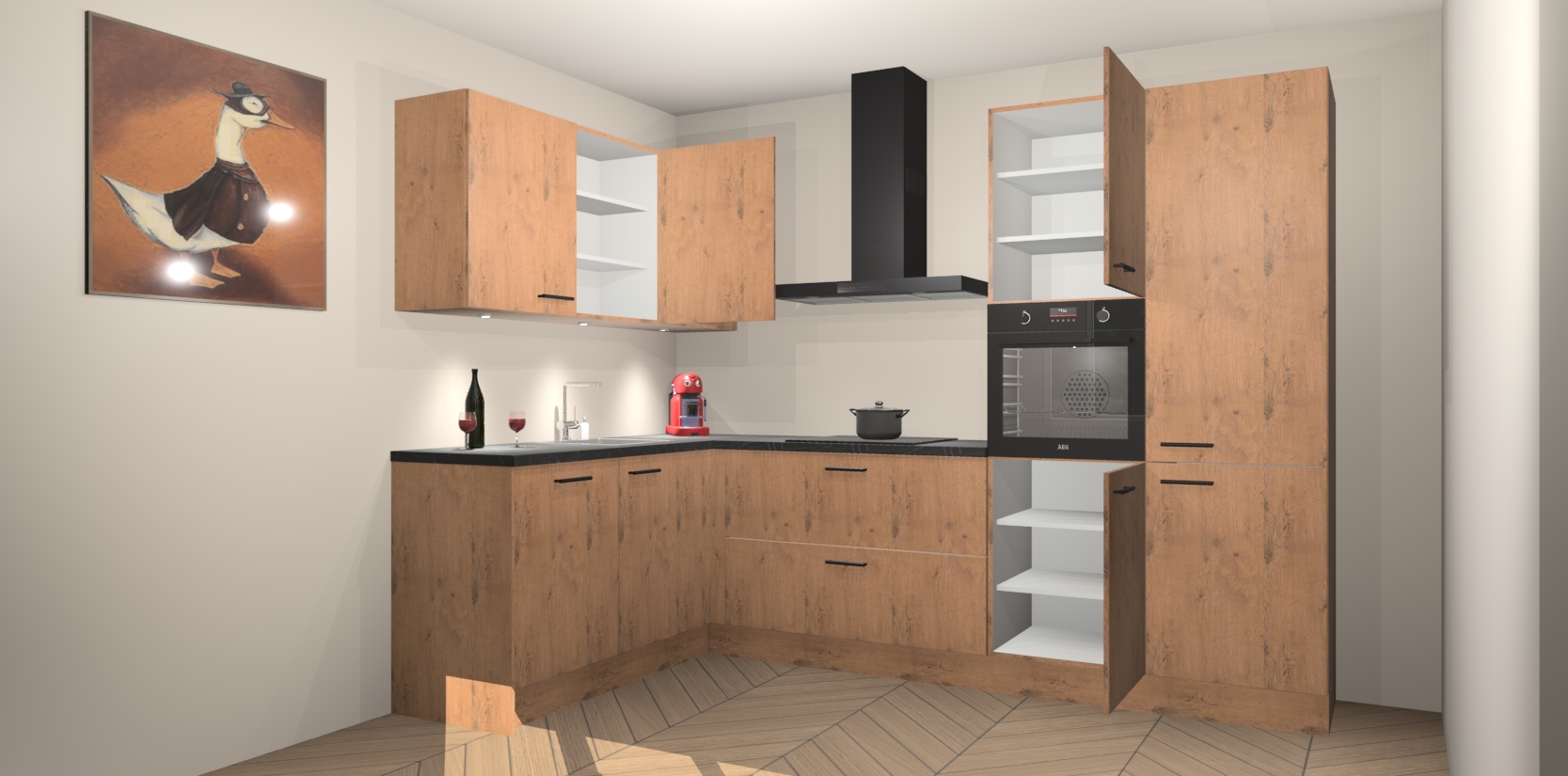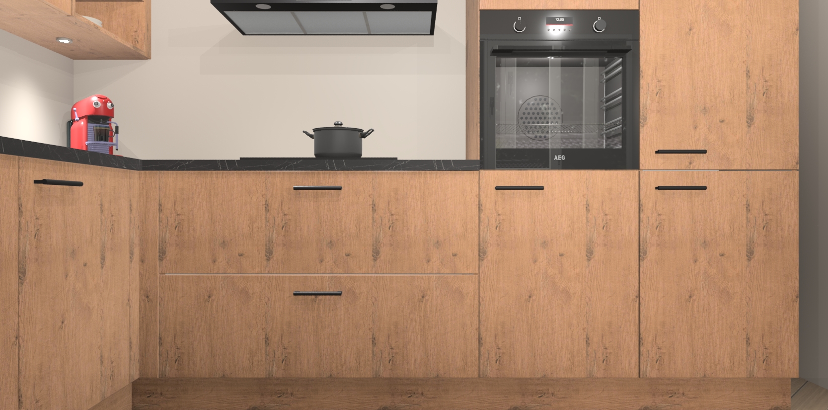 De Astoria Eiken keuken Cognac is een adembenemend ontwerp met een modern en tijdloos uiterlijk. Deze luxe keuken straalt echt aristocratisch uit, waardoor uw koken plezieriger zal worden! Het prachtige design begint bij de hoekkeuken, wat perfect past bij elk type interieur. Bovendien bevat deze hoogwaardige set vijf inbouwapparaten - van oven tot koelkast - die via bestelling naar AEG geüpgraded kunnen worden!