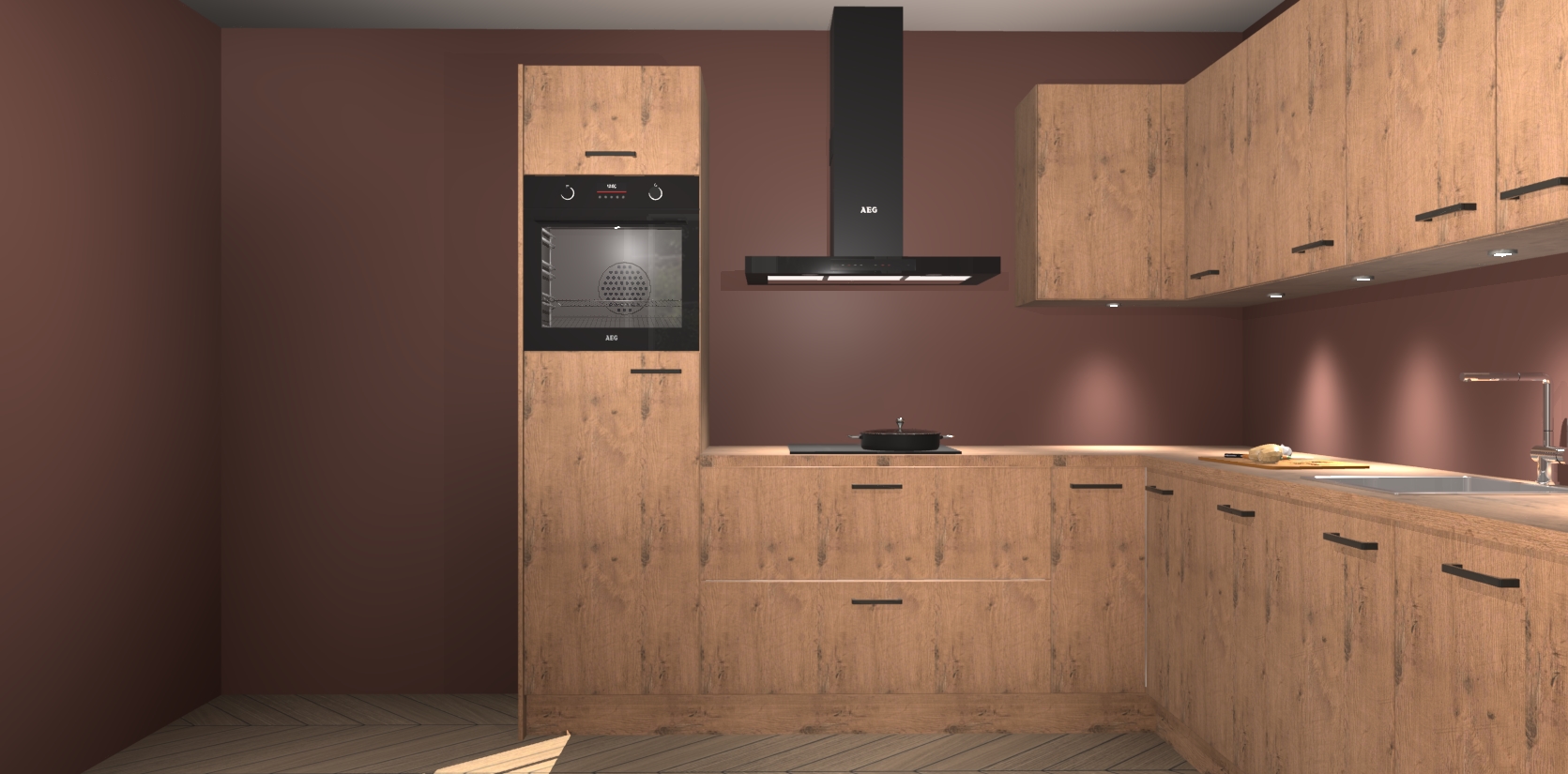 De Astoria Eiken keuken Debar is uitgerust met vijf inbouwapparaten die elke kooktaak handig en efficiënt maken. Een oven, inductiekookplaat, afzuigkap, vaatwasser en koelkast zijn standaard, maar kunnen na bestelling eenvoudig worden geupgrade naar AEG. Profiteer vervolgens van de softclose deuren voor snelle toegang en geruisloze toegang.