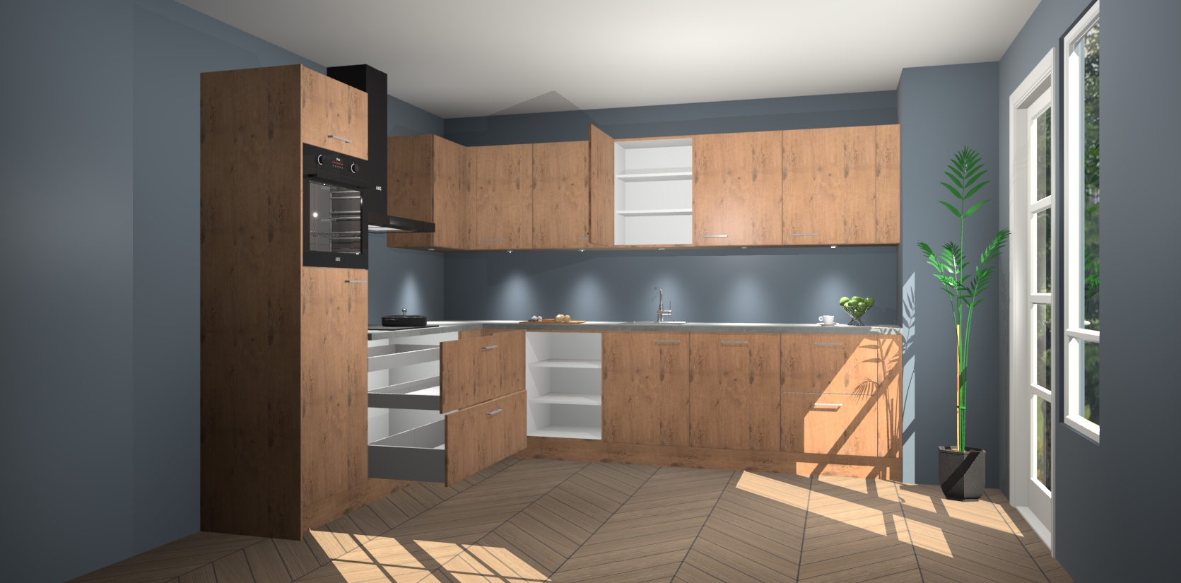 De Astoria Eiken keuken Debar is uitgerust met vijf inbouwapparaten die elke kooktaak handig en efficiënt maken. Een oven, inductiekookplaat, afzuigkap, vaatwasser en koelkast zijn standaard, maar kunnen na bestelling eenvoudig worden geupgrade naar AEG. Profiteer vervolgens van de softclose deuren voor snelle toegang en geruisloze toegang.