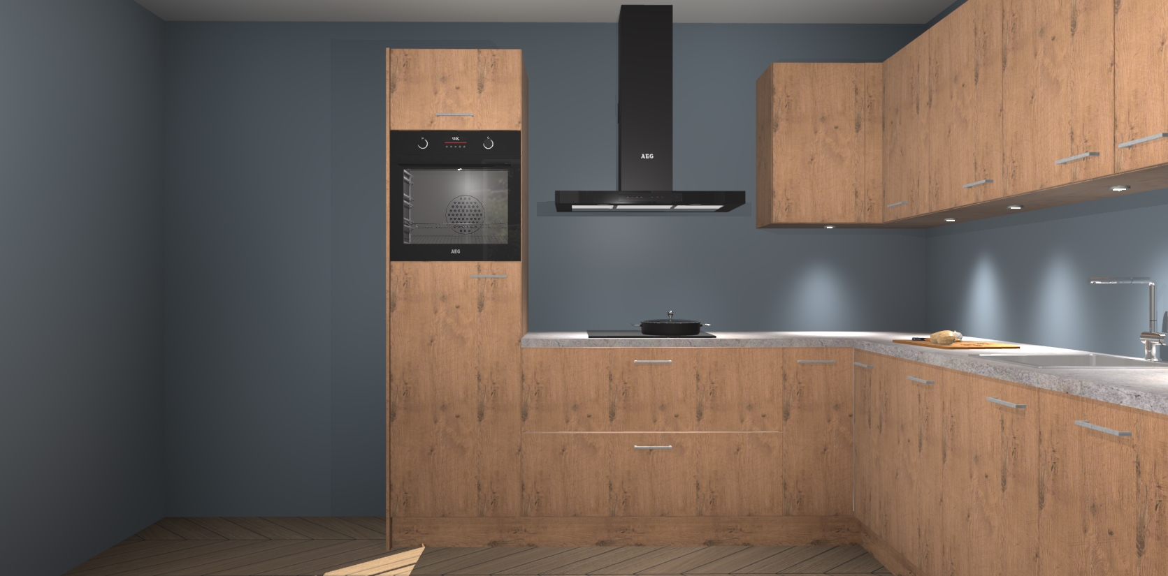 De Astoria Eiken keuken Debar is uitgerust met vijf inbouwapparaten die elke kooktaak handig en efficiënt maken. Een oven, inductiekookplaat, afzuigkap, vaatwasser en koelkast zijn standaard, maar kunnen na bestelling eenvoudig worden geupgrade naar AEG. Profiteer vervolgens van de softclose deuren voor snelle toegang en geruisloze toegang.