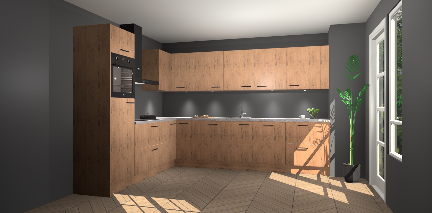 De Astoria Eiken keuken Debar is uitgerust met vijf inbouwapparaten die elke kooktaak handig en efficiënt maken. Een oven, inductiekookplaat, afzuigkap, vaatwasser en koelkast zijn standaard, maar kunnen na bestelling eenvoudig worden geupgrade naar AEG. Profiteer vervolgens van de softclose deuren voor snelle toegang en geruisloze toegang.
