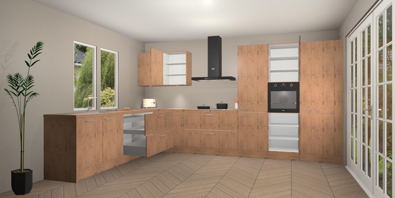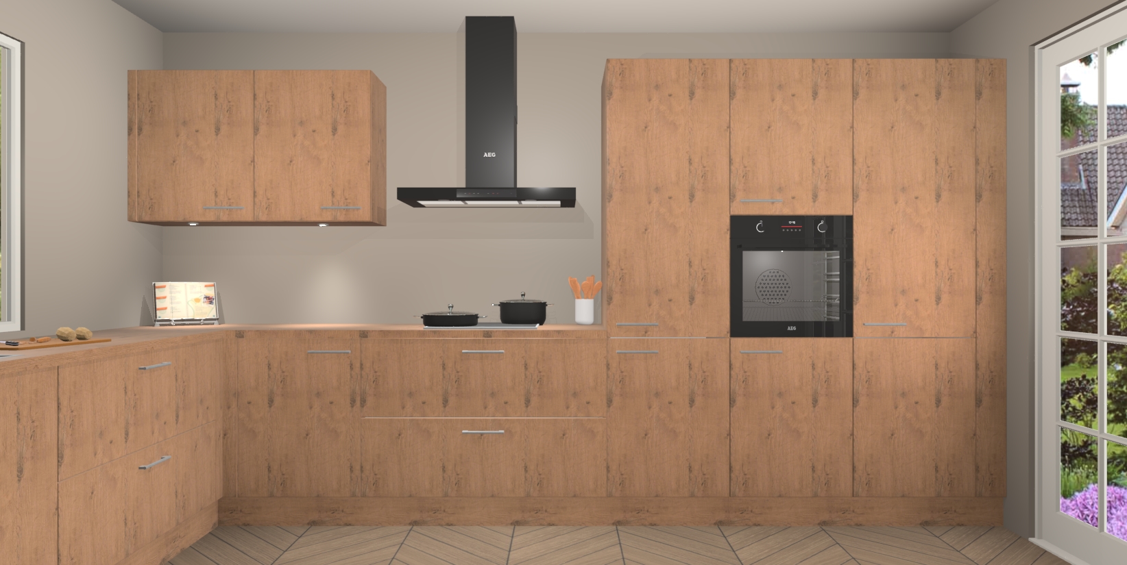 Heeft u nog apparatuur nodig? Geen probleem: de Astoria Eiken keuken Debrecen bevat vijf ingebouwde apparaten - een oven, inductiekookplaat, afzuigkap, vaatwasser en koelkast - die gemakkelijk kunnen worden bijgewerkt naar AEG na bestelling. En als dat nog niet genoeg is; onze kasten worden pre-geassembleerd geleverd en zijn verkrijgbaar tegen een vastgeroeste lage prijs! U hoeft nooit meer te zoeken naar goede kwaliteit en service want onze producten hebben echt Duitse kwaliteit.