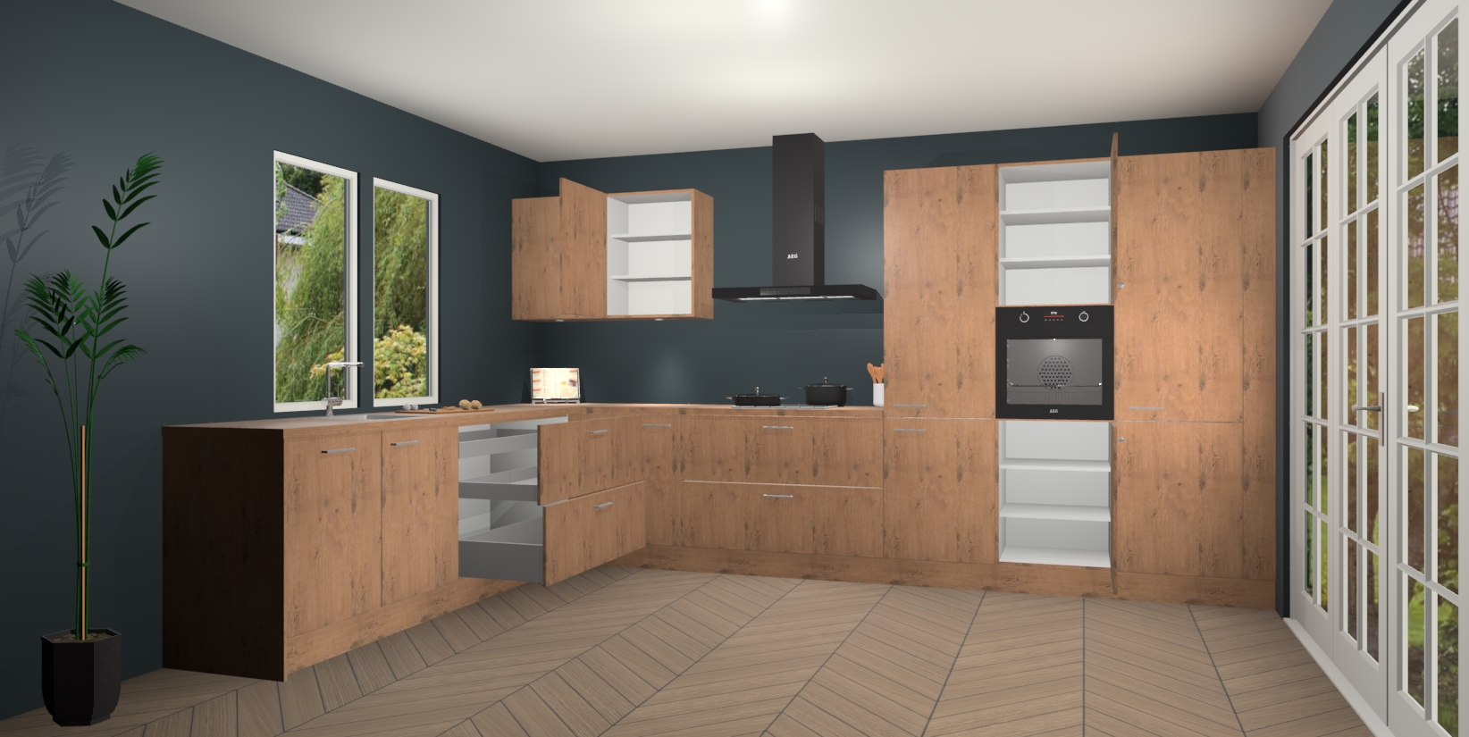 Heeft u nog apparatuur nodig? Geen probleem: de Astoria Eiken keuken Debrecen bevat vijf ingebouwde apparaten - een oven, inductiekookplaat, afzuigkap, vaatwasser en koelkast - die gemakkelijk kunnen worden bijgewerkt naar AEG na bestelling. En als dat nog niet genoeg is; onze kasten worden pre-geassembleerd geleverd en zijn verkrijgbaar tegen een vastgeroeste lage prijs! U hoeft nooit meer te zoeken naar goede kwaliteit en service want onze producten hebben echt Duitse kwaliteit.