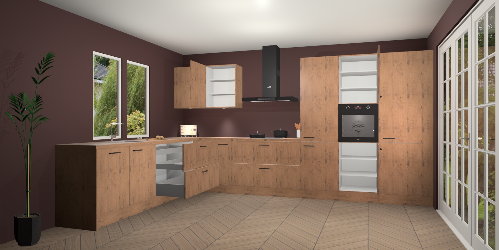 Heeft u nog apparatuur nodig? Geen probleem: de Astoria Eiken keuken Debrecen bevat vijf ingebouwde apparaten - een oven, inductiekookplaat, afzuigkap, vaatwasser en koelkast - die gemakkelijk kunnen worden bijgewerkt naar AEG na bestelling. En als dat nog niet genoeg is; onze kasten worden pre-geassembleerd geleverd en zijn verkrijgbaar tegen een vastgeroeste lage prijs! U hoeft nooit meer te zoeken naar goede kwaliteit en service want onze producten hebben echt Duitse kwaliteit.